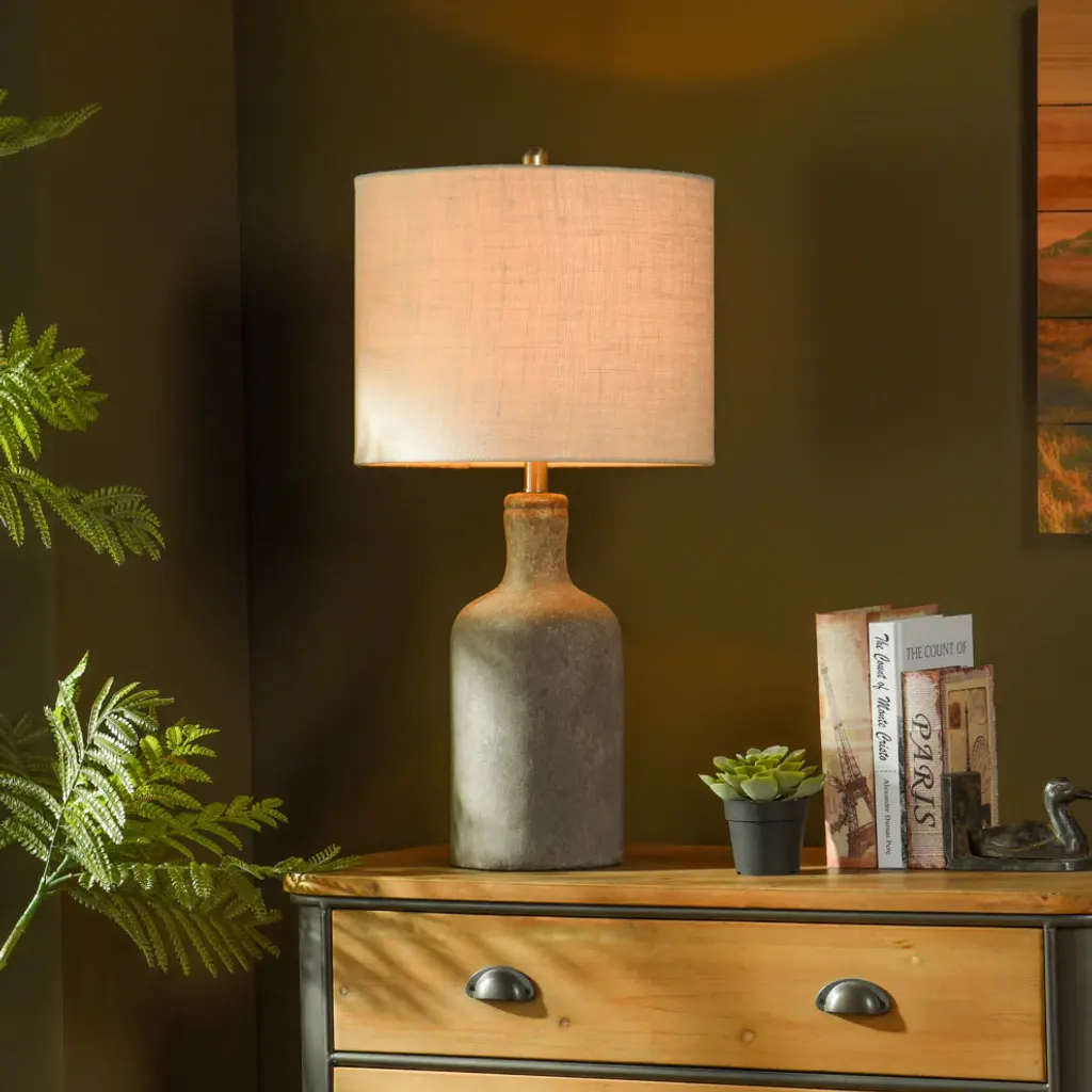 Olney, Textured Concrete Table Lamp With Drum Shade, Multi-Color Dark Gray