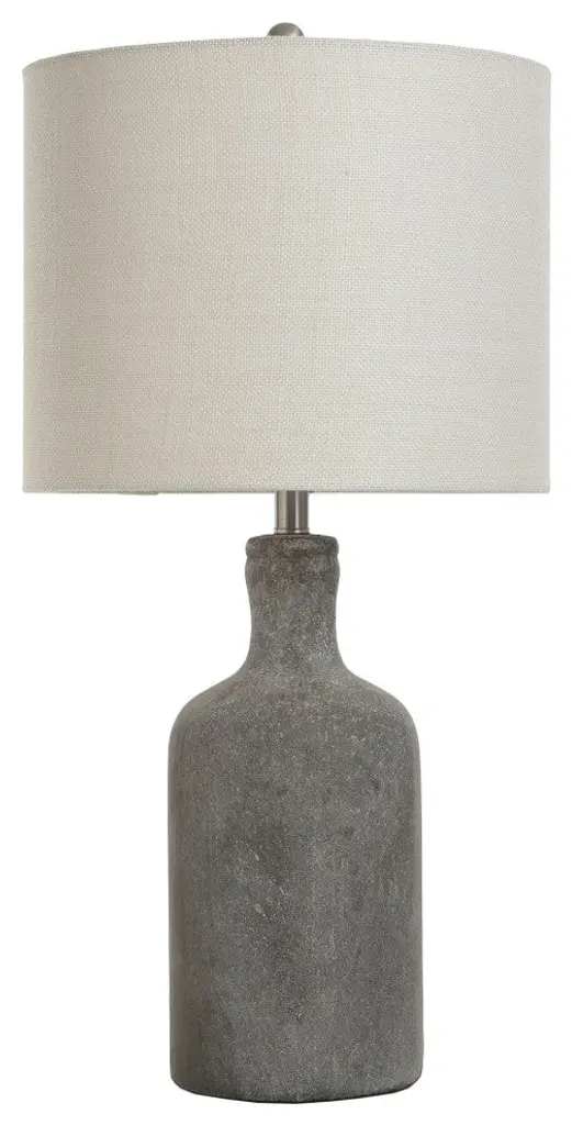 Featuring a textured off white linen shade that enhances the appearance of the rugged concrete frame with its numerous tones of dark gray, the Olney Table Lamp is the highlight of any space. The numerous tactile elements of this fixture give it an eclectic appeal. With its versatile three-way bulb and neutral color palette, this lamp is ready to bring stylish illumination to a nightstand or tabletop.Lighting Information:Bulb type: IncandescentNumber of bulbs: 1Bulbs Not IncludedBulb wattage: 150Plug-InUL Listed |Due to lighting and monitor differences, actual colors and finishes may vary slightly from what appears online.