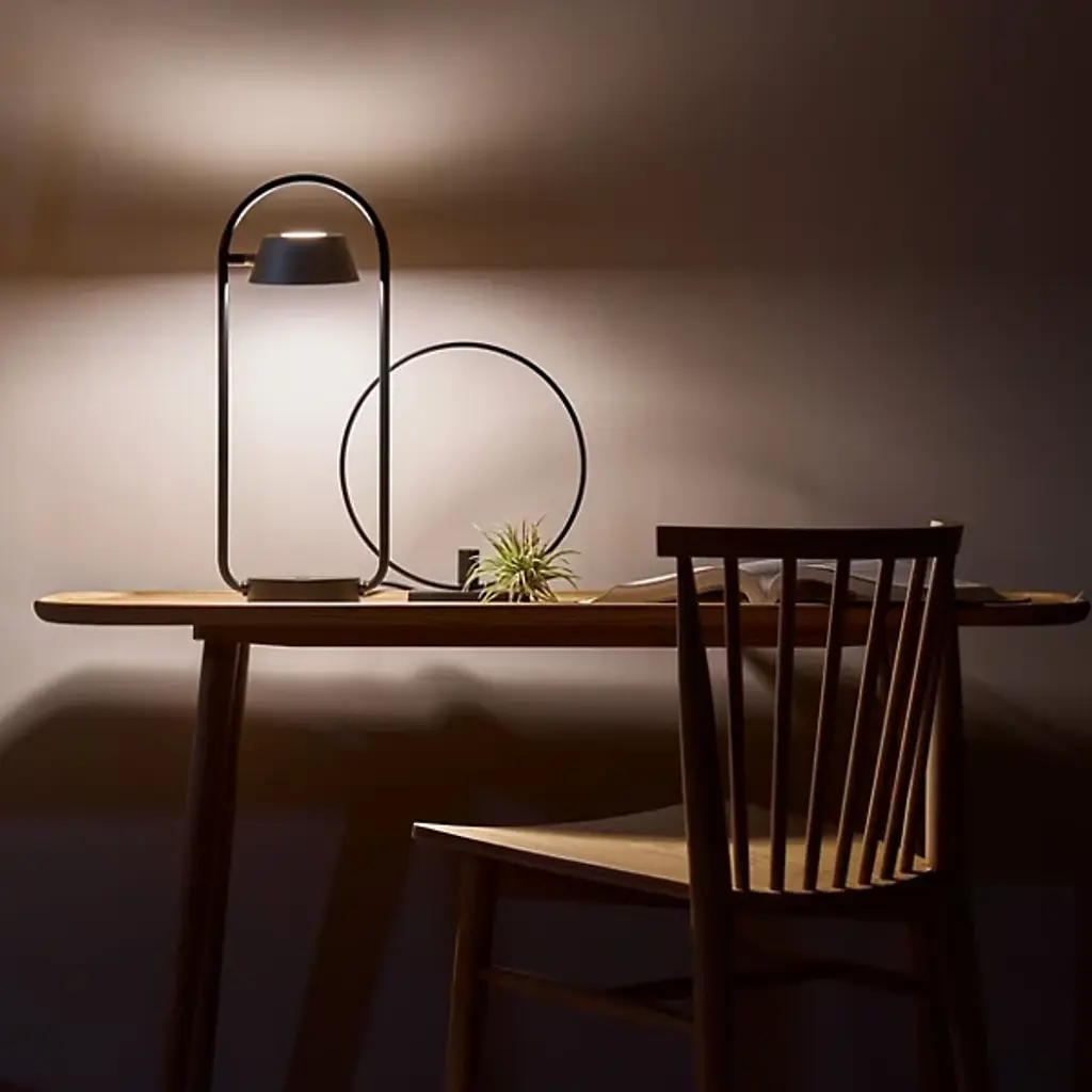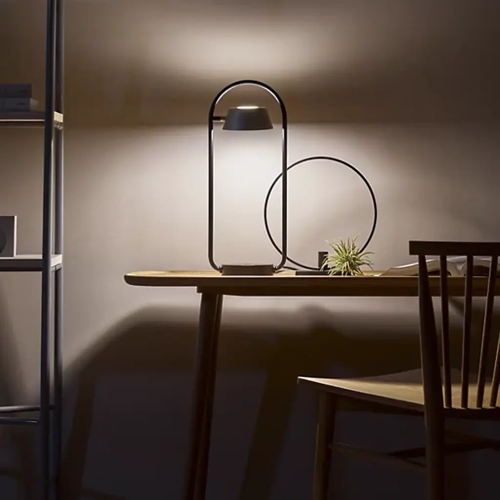Decorate the smaller surfaces of your modern home with the clean and minimalist silhouette of the Olo LED Table Lamp from Seed Design. Made of smooth metal throughout, this piece forms a comforting cylindrical shape from a single thin line extending from a round base. An aluminum shade at the center contains an integrated LED. The direction of the light can be adjusted with ease, sending a bright and even glow into the space around it.