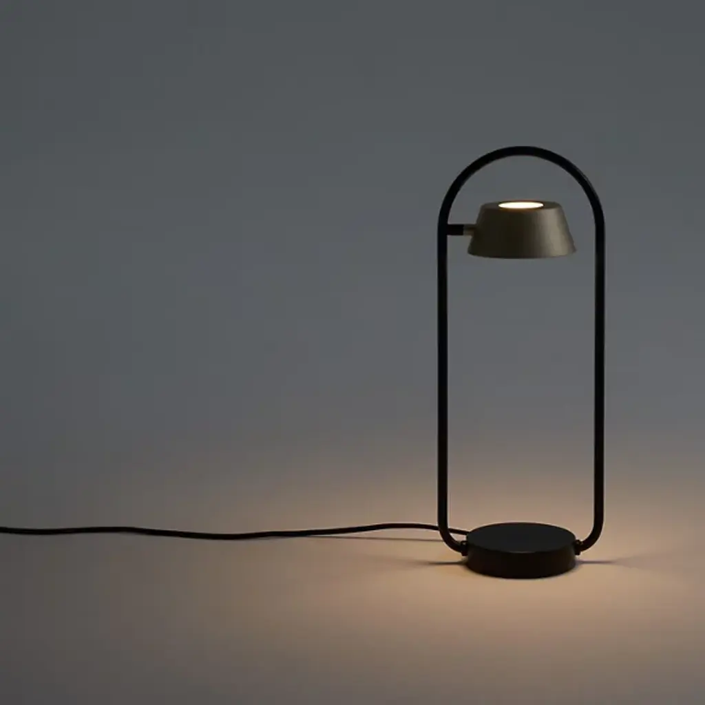 Decorate the smaller surfaces of your modern home with the clean and minimalist silhouette of the Olo LED Table Lamp from Seed Design. Made of smooth metal throughout, this piece forms a comforting cylindrical shape from a single thin line extending from a round base. An aluminum shade at the center contains an integrated LED. The direction of the light can be adjusted with ease, sending a bright and even glow into the space around it.