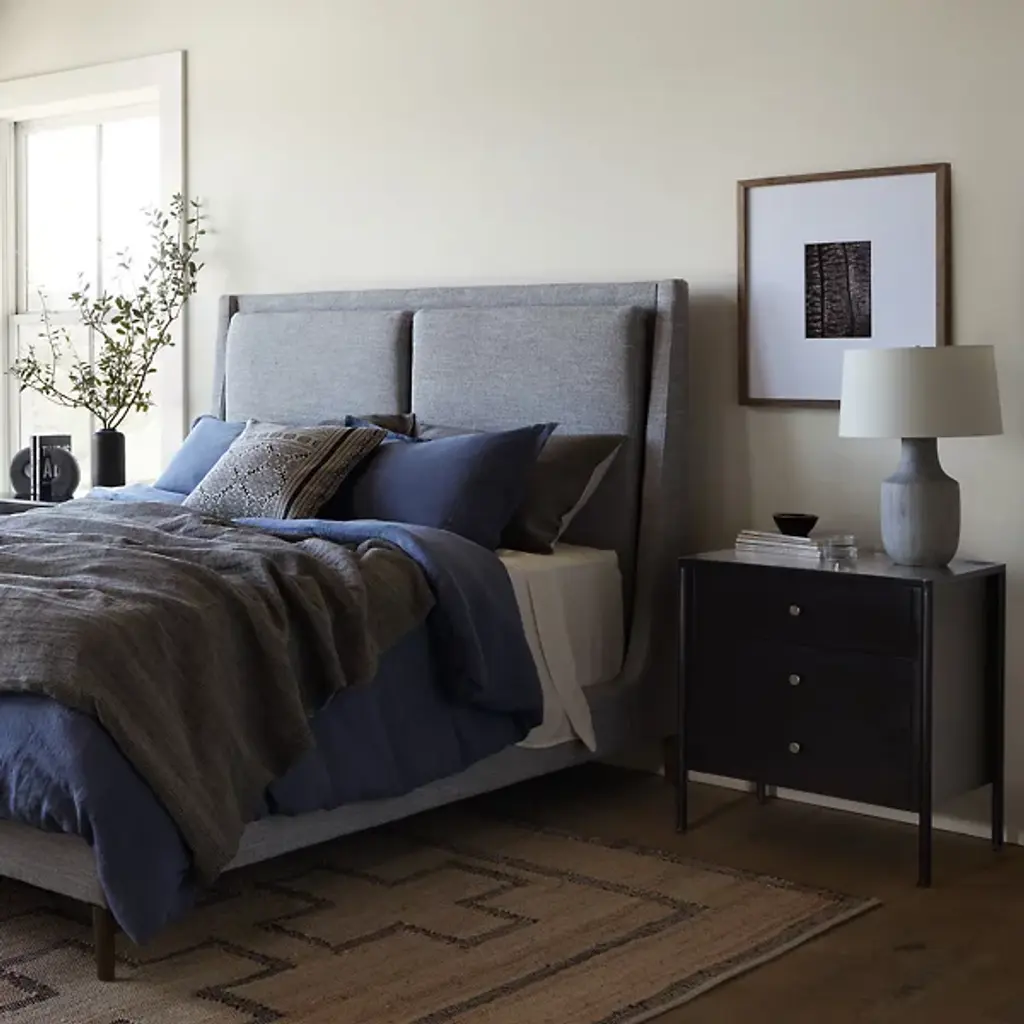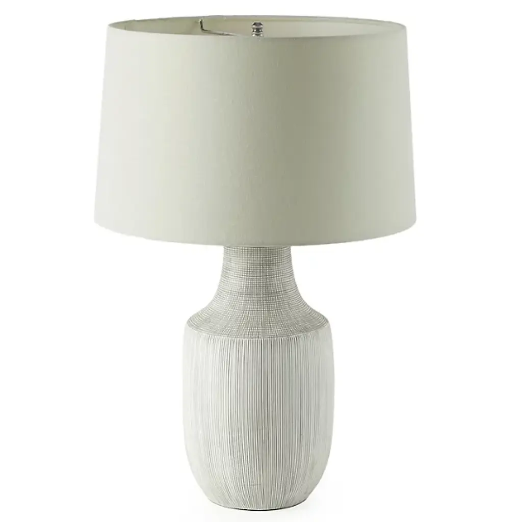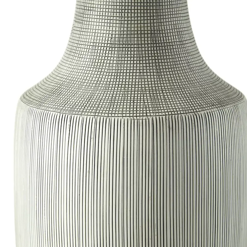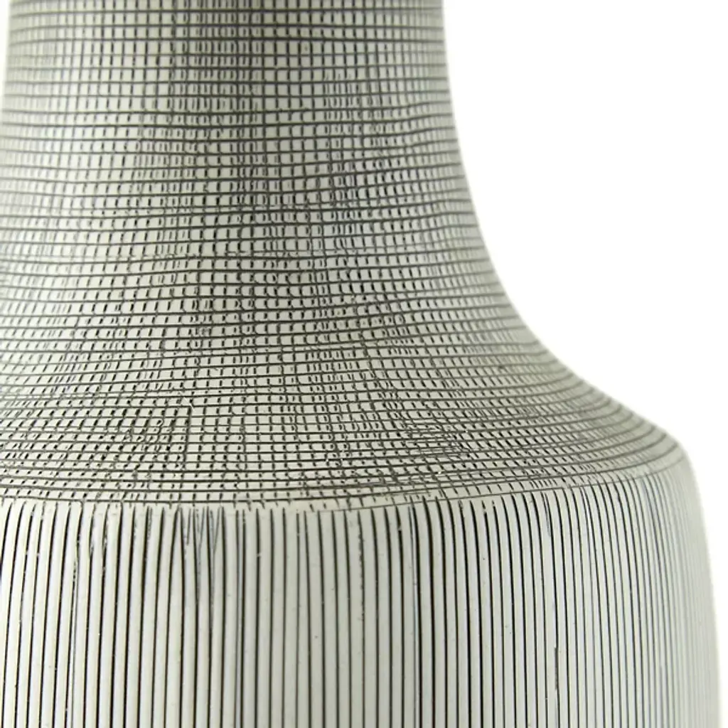 Give your living space a mid-century modern aesthetic with the Ombak Table Lamp by Four Hands. A subtle, checked design is hand-painted onto a gently rounded ceramic lamp base. This table lamp’s body neatly tapers to meet an ivory linen shade. A brilliant LED creates a pleasant glow, enhancing visibility.