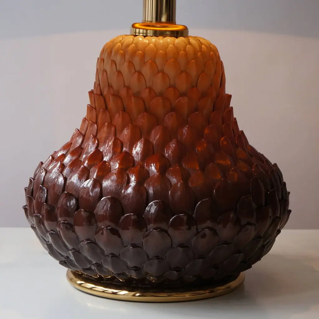 One Of Two Ceramic And Brass Artichoke Table Lamps