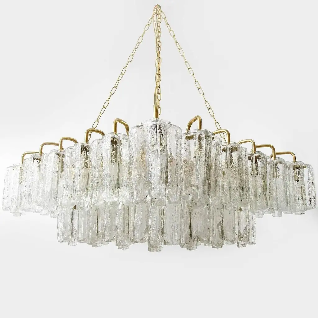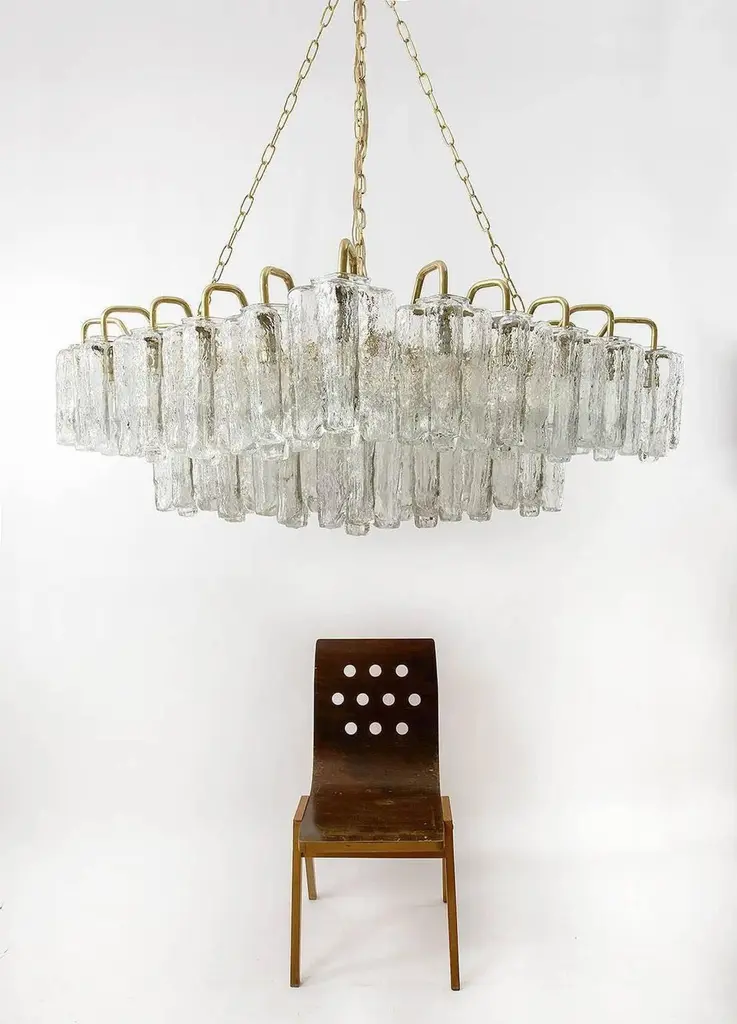 One Of Two Huge Kalmar 'Granada' Chandeliers Flush Mount Lights Brass Glass 1970