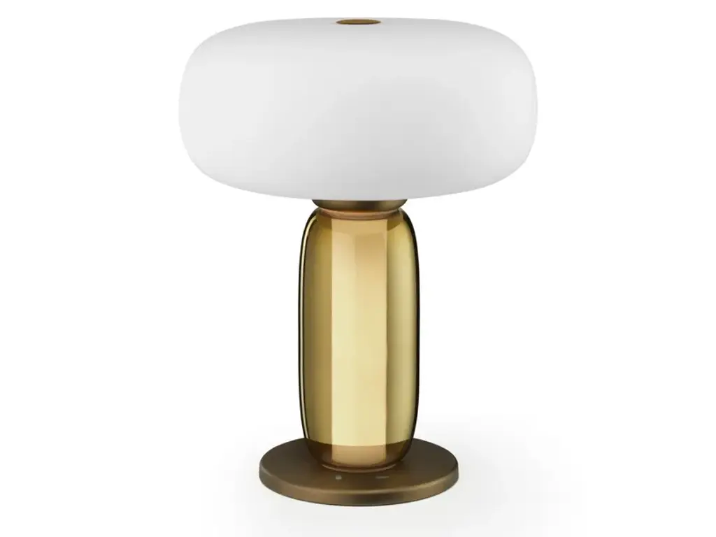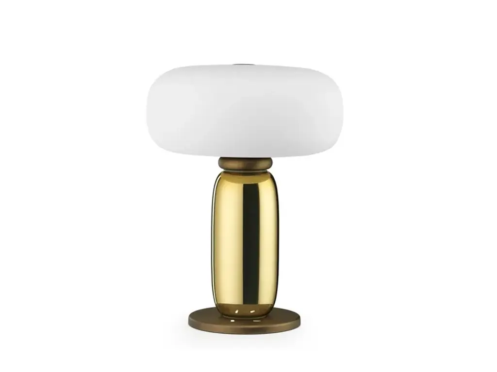 One On One lamp speaks to the unique ability to light up different sections of the lamp body, and it expresses and inspires intimacy while talking with someone one on one.The One on One is composed by two blown glass elements, with the lower being metalized and housing an internal glass cylinder to give a sculptural effect to the light source.The upper glass is frosted to provide a significant brightness.Available in brass and burnished brass.Technical data:Rating Power: 39WVoltage: 24VClass IIIPower supply supplied: 100-240VDimmable: YesLuminous flux: 3700 lmEfficiency: 94 lm / WColor temperature: 3000KColor rendering index (CRI): 90Certification CE