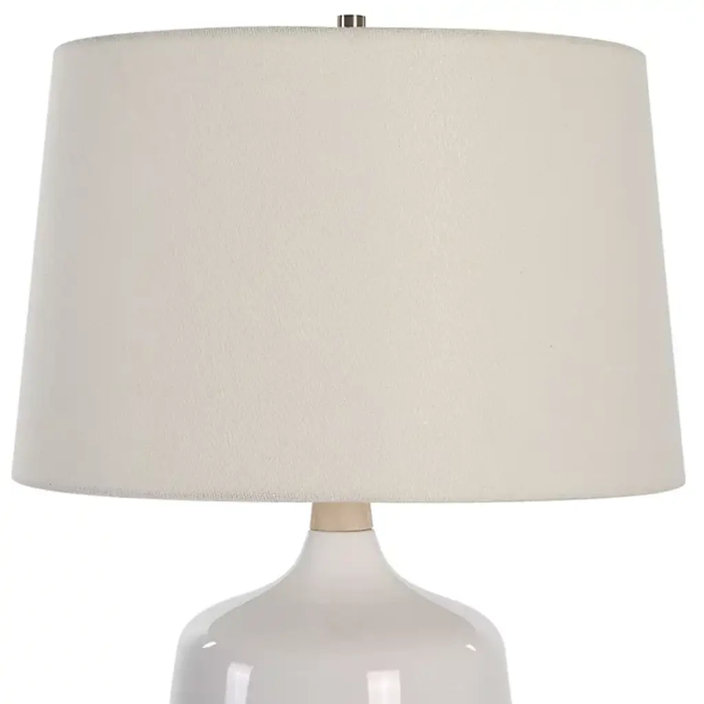 The Opal Table Lamp from Uttermost exudes elegance and embodies fine craftsmanship. Made from wood and lovely ceramic, this lamp features a tapered body that makes a bold design statement. Crowned by a fabric shade, it tempers the light emanating from an LED, providing a warm glow. Opal brings a transitional sense of style to your home, making it a versatile addition. The 3-way socket switch is included for your convenience.
