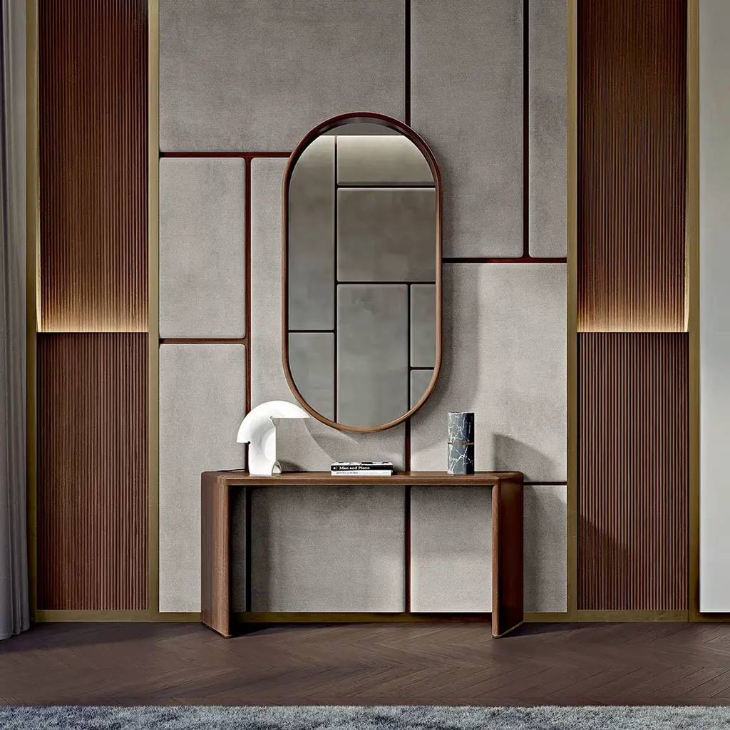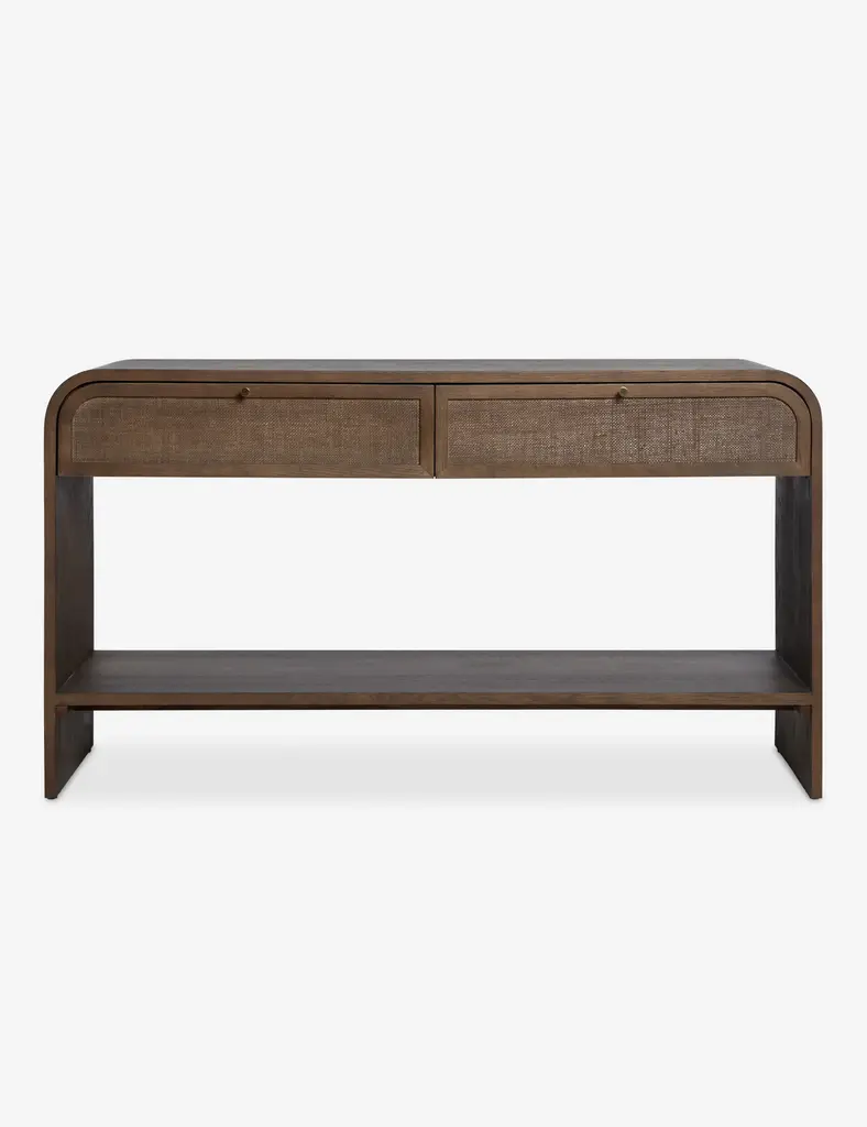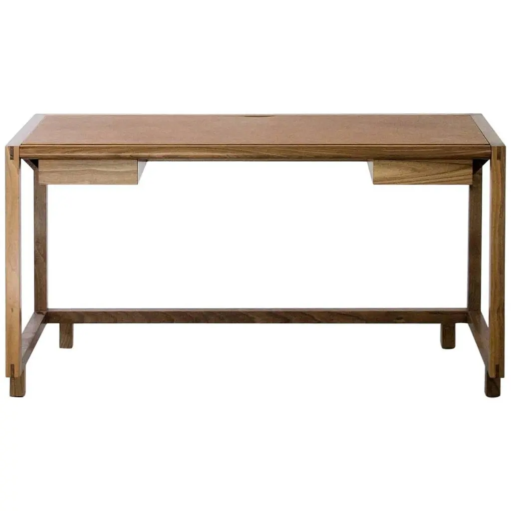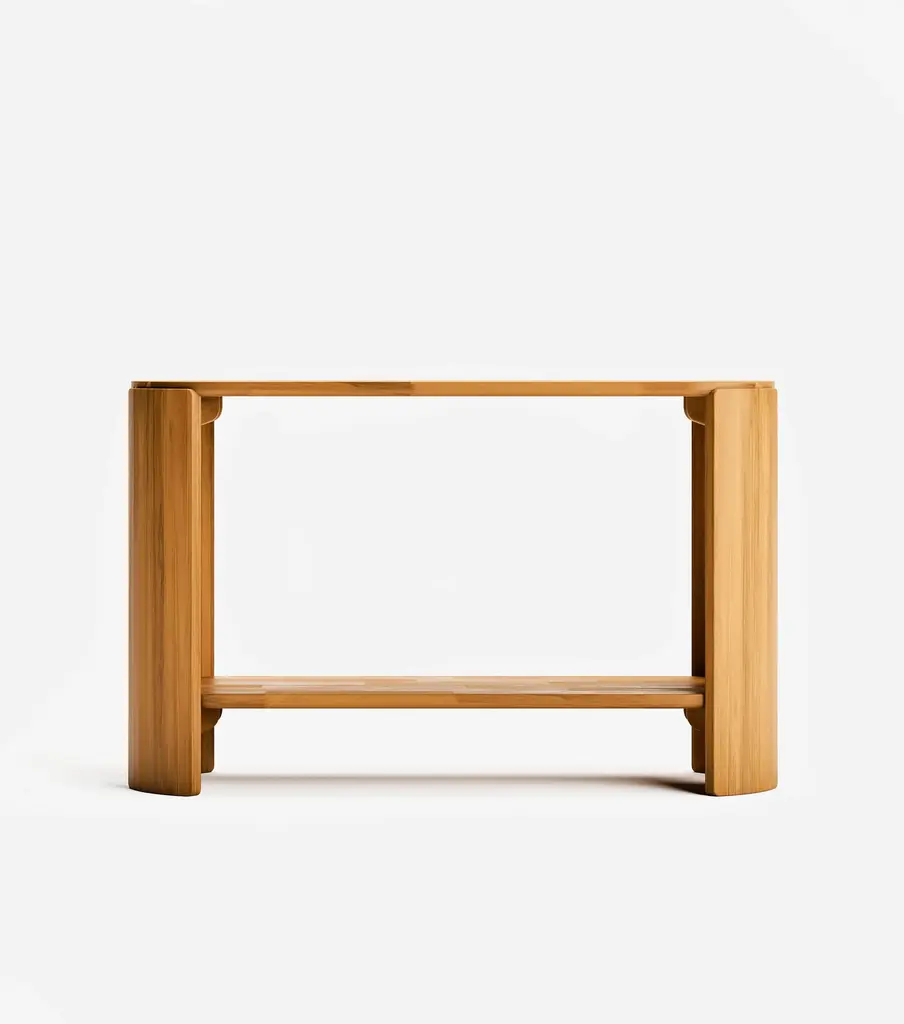 Minimalism meets dynamism in this exquisite console from the Opale Collection. Fashioned of sturdy American walnut, a distinctive trait of its design is the slanted cut of its sides, which also serve a crucial structural function. Best complemented by a table lamp, a vide-poche, a vase, or more decorative objects, it makes for a spot-on addition to elegant modern entryways.