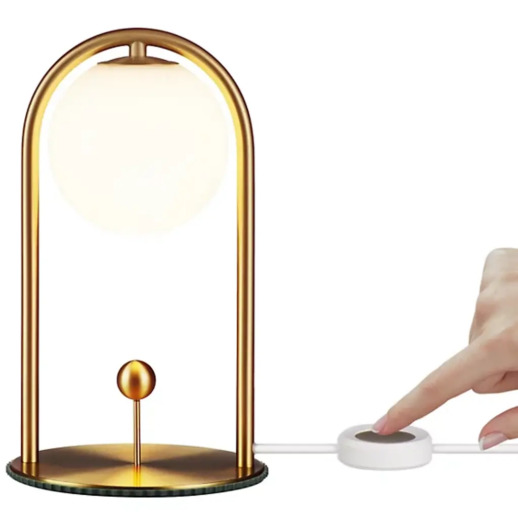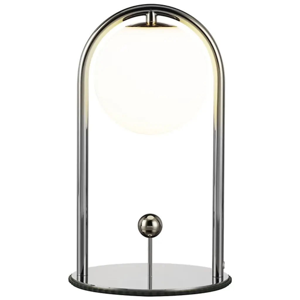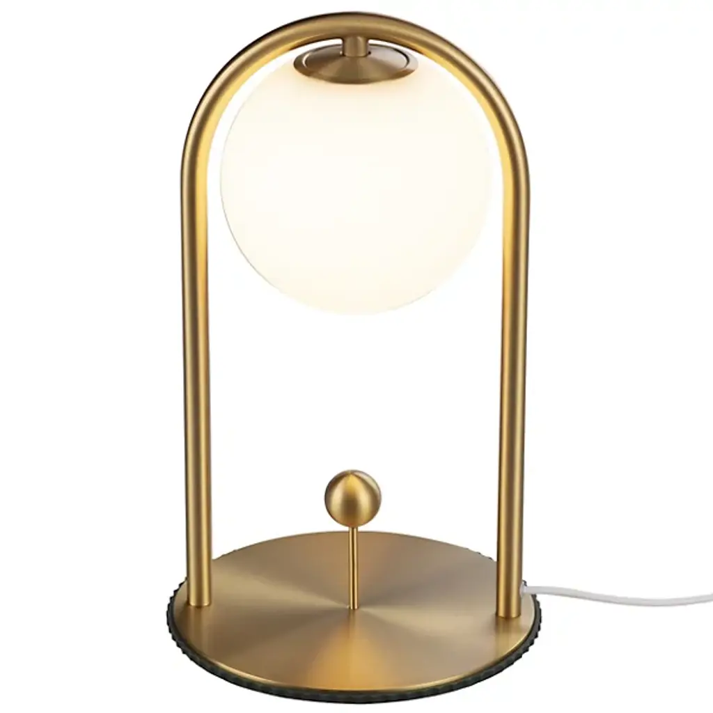 Personalize your surroundings with the Orazia LED Table Lamp The sheen of a well-rounded base plate is punctuated at the center by a spherical furnishment akin to strong ball-bearings. The arabesque of a polished frame draws your eye to a globe’s warm light. Huxe’s fine metalwork forms an archway through which the globe is prominently celebrated. The open space between the base plate and the arch’s summit creates a stunning visual. A touch dimmer lets you enliven or soften the lamp’s brightness according to your ambient needs.
