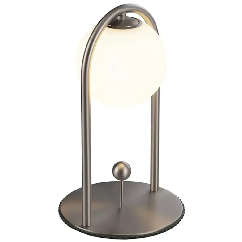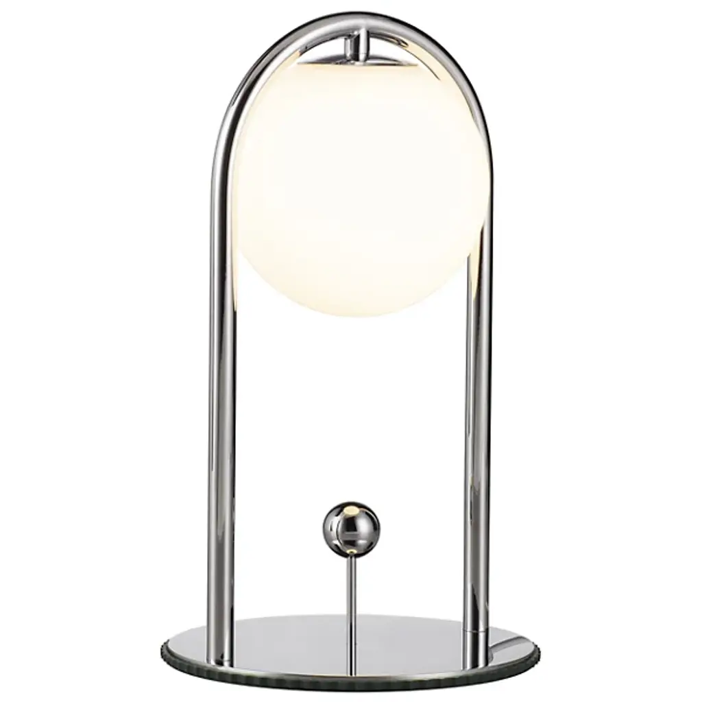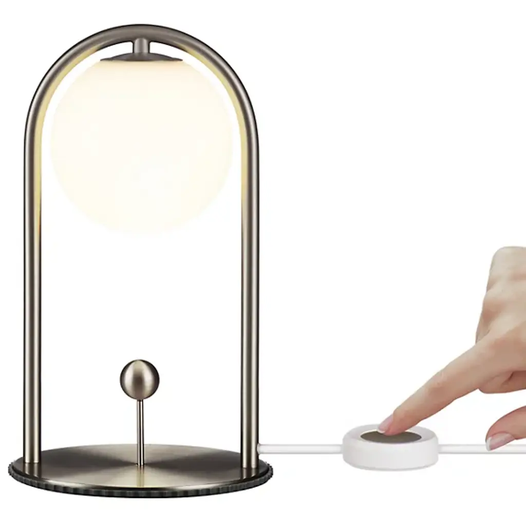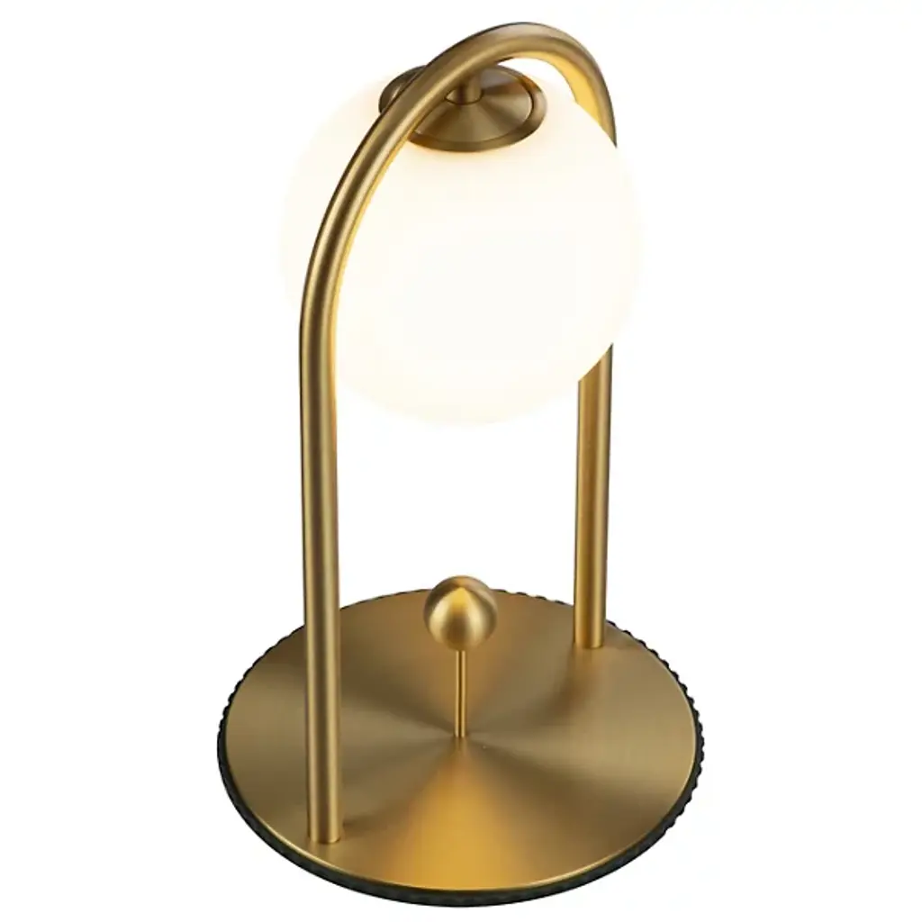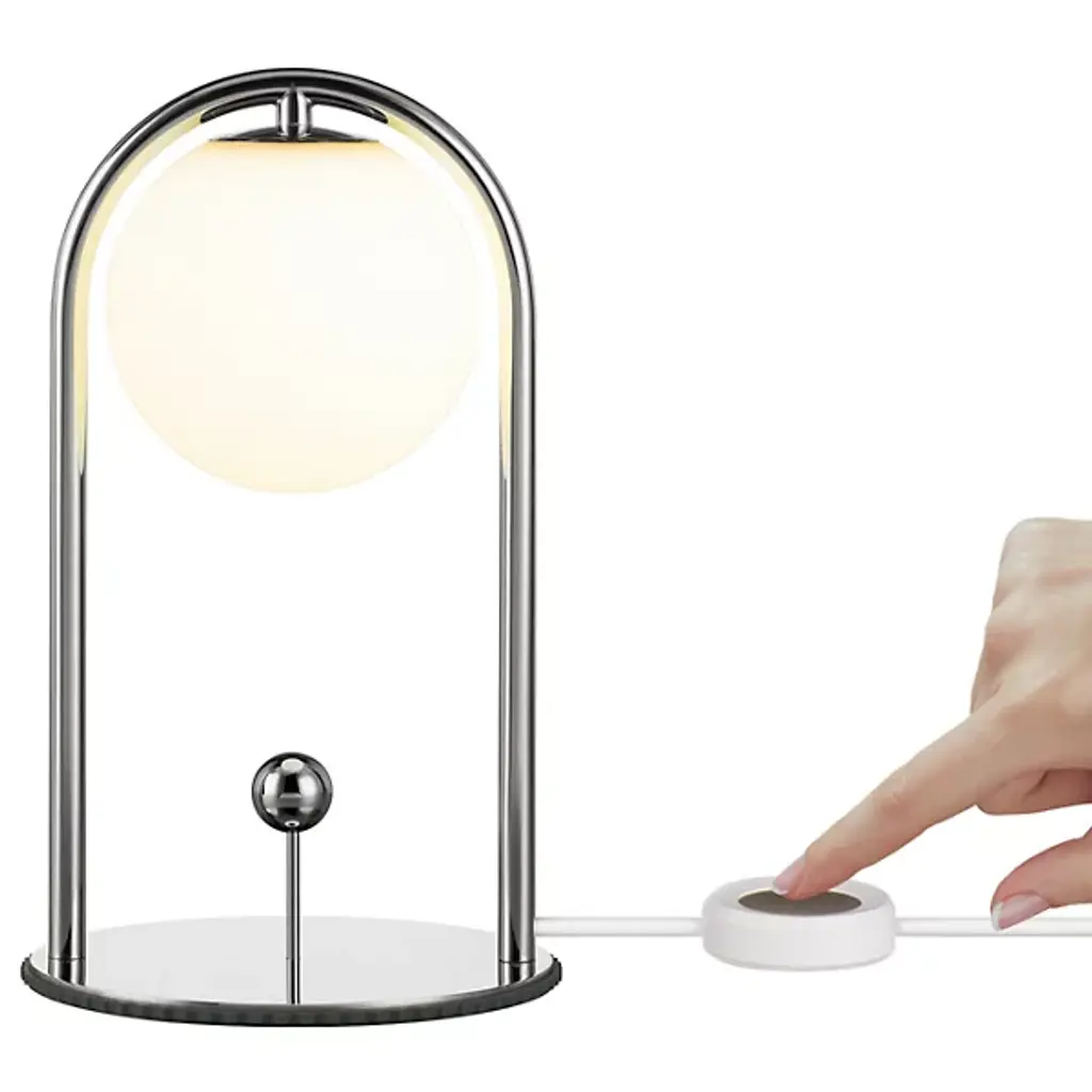 Personalize your surroundings with the Orazia LED Table Lamp The sheen of a well-rounded base plate is punctuated at the center by a spherical furnishment akin to strong ball-bearings. The arabesque of a polished frame draws your eye to a globe’s warm light. Huxe’s fine metalwork forms an archway through which the globe is prominently celebrated. The open space between the base plate and the arch’s summit creates a stunning visual. A touch dimmer lets you enliven or soften the lamp’s brightness according to your ambient needs.