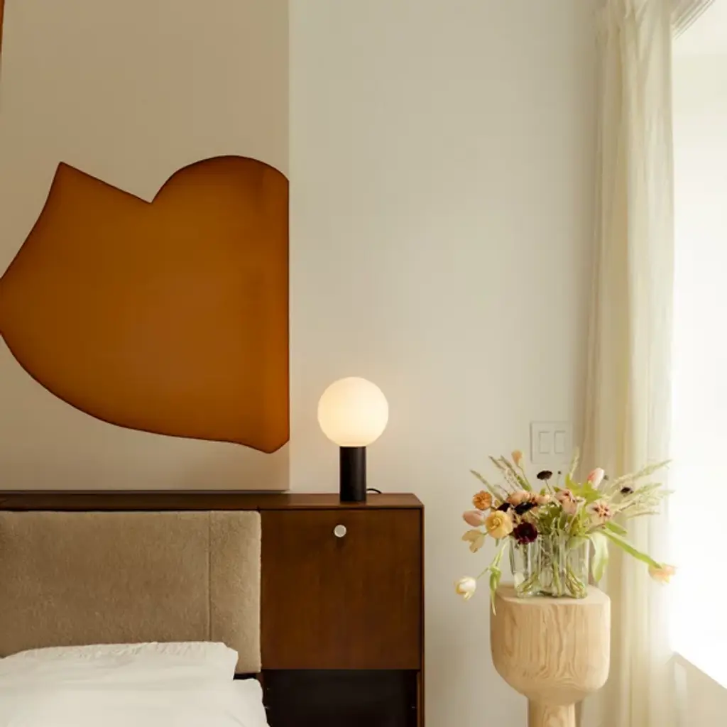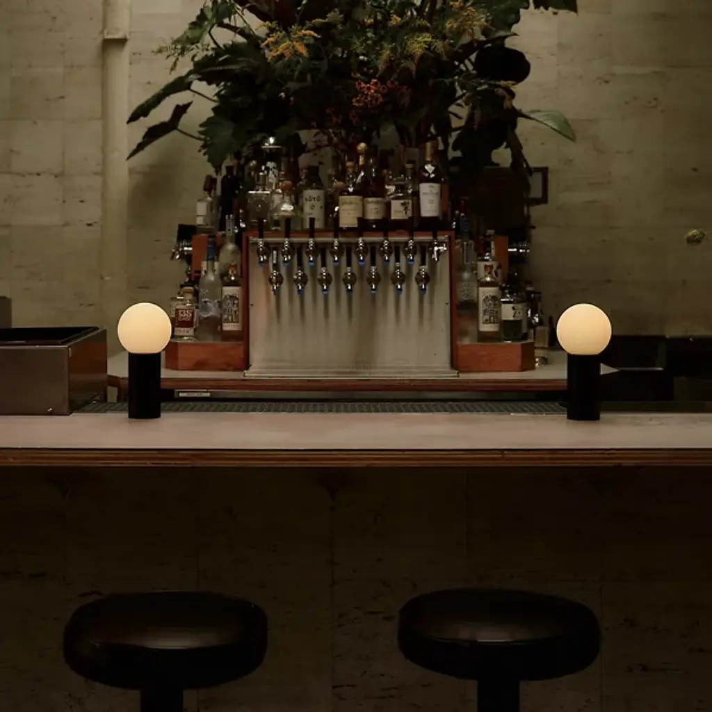The Orb Table Lamp from In Common With presents an elemental fusion of form and function, marrying a hand-blown glass sphere diffuser with a sturdy steel base. Its versatility is matched only by its simplicity, with a base switch ensuring effortless control over illumination. The design focuses on timeless simplicity, meticulously constructed from steel and hand-blown glass, blending Contemporary cleanliness with a vibrant Artisanal Modern character.