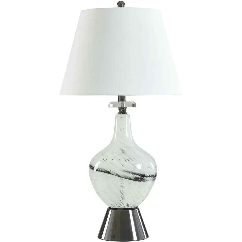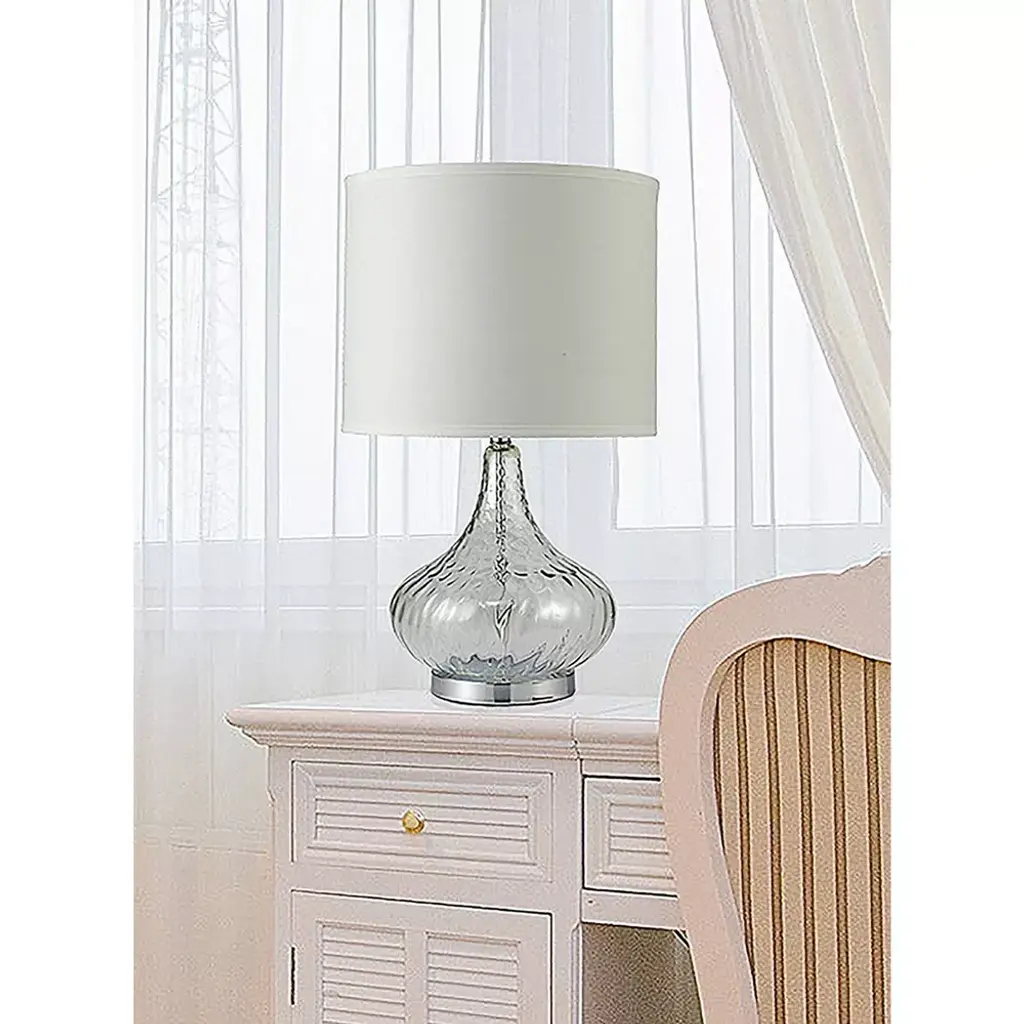 Bring a touch of practical elegance to your living space with the Courtney Fluted Table Lamp from Ore International. The fluted acrylic base has a bubble effect to add dimension and texture to the table lamp. A white drum shade covers the light to give off a soft glow when turned on. The 24.5-inch lamp is ideal placing on an end table or desk for brilliant illumination.
