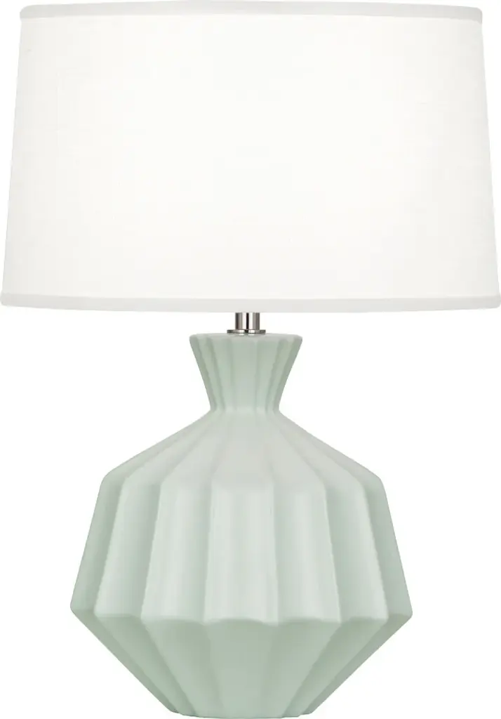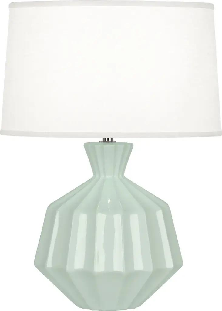 Citron Orion Contemporary Accent LampFeaturesNumber of bulb: 1Bulb type: B (Candelabra Base)Max wattage: 60WVoltage: 120VSocket: Candelabra Phenolic E12Switch: Hi-Lo RotarySwitch location: Line SwitchFinish: Citron Glazed CeramicShade: Oyster Linen Shade with Self Fabric Top DiffuserCord color: SilverUL listed: DryDimensionsShade dimensions: 11.5 inches top x 12.5 inches bottom x 7.5 inches down sideBase dimensions: 9.5 inches height x 8.75 inches width