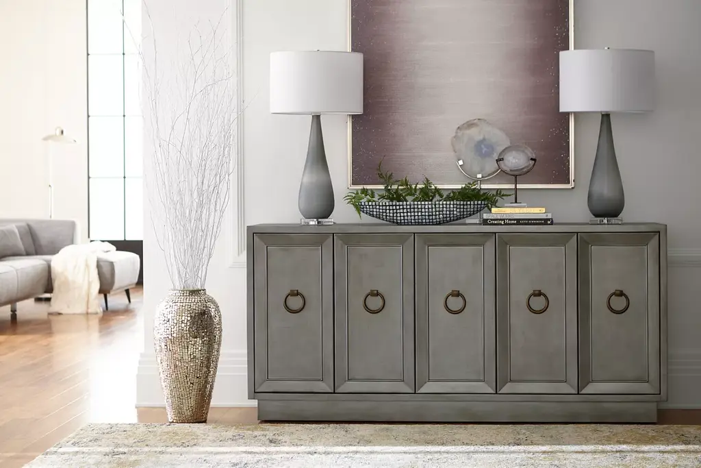 Upgrade your lighting experience with our Orion lamp. This piece showcases a frosted satin gray glass accented with a polished nickel base for an ethereal allure. Adorned with a white linen shade, the on/off switch powers a 100W bulb.