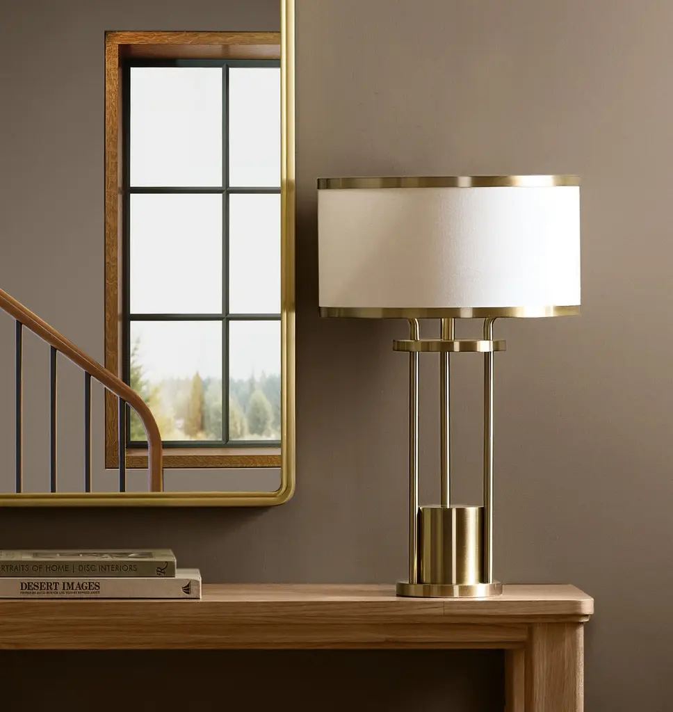 Fresh and contemporary, Ortega features a tri-stem base that curves into a metal trim shade—adding modern style and warm illumination to any room.