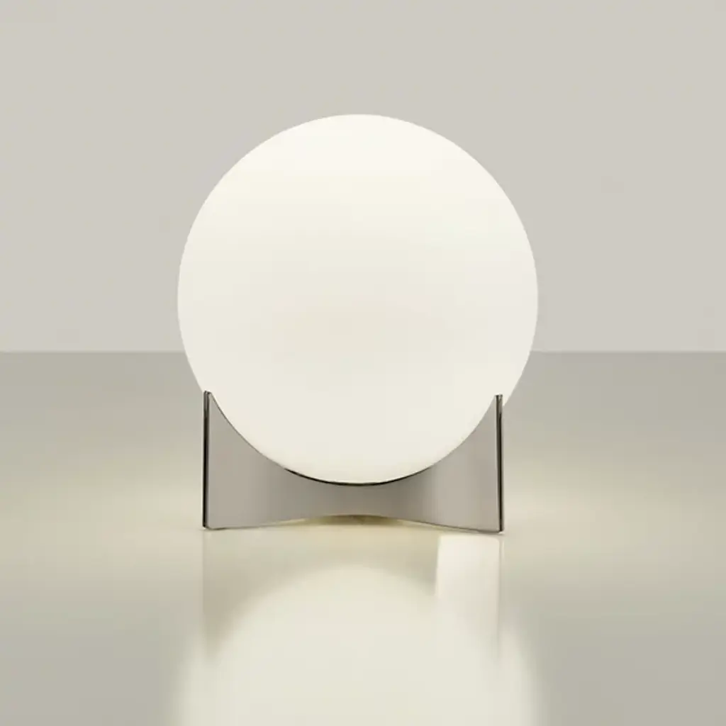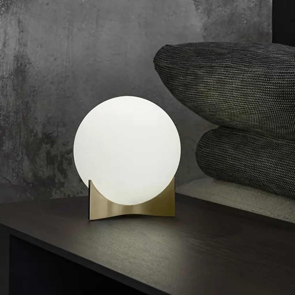 A petite tribute to the curve-loving Brazilian architect, Oscar Niemeyer. The Oscar Table Lamp by Terzani was designed by Dodo Arslan with curves throughout. It features a perfect sphere of Satin White Glass cradled in a curved Brass base. The delicate base manages to hold the shade securely but delicately, so as not to interfere with the broad wash of light diffused through the glass globe. This table lamp’s small size allows it to easily fit on a side table or desk, to produce a lot of light—and add plenty of modern style--without taking up a lot of space.