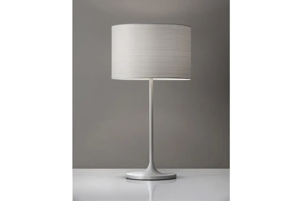 Fresh but not flashy, the bright white finish of the Oslo Table Lamp by Adesso is a sleek and simple way to add a bold burst to modern spaces and those with a mid-century flair. Featuring a finish thats clean and cool, its topped by a hard-backed drum shade covered with crisp rice paper in a subtle striped pattern. On its own, in a pair, or accenting other Oslo pieces by Adesso, the Oslo Table Lamp makes it easy to add a modest mid-century touch.Shade: 11.5"diameter x 8"h