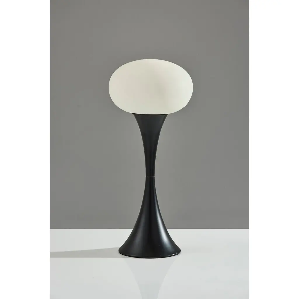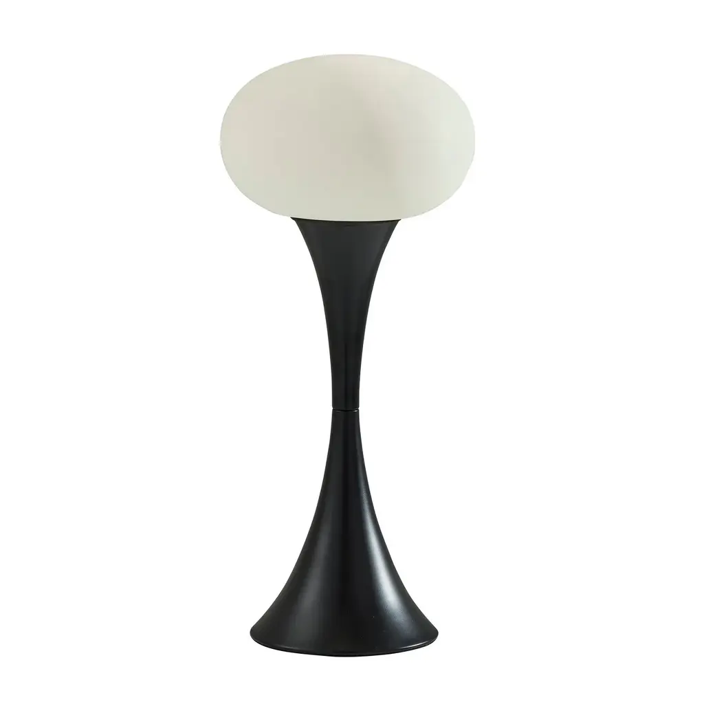 Introducing the 2603-01 Otis Table Lamp, a striking addition to any modern space. With its sleek black finish and minimalist design, this lamp brings contemporary elegance to your home or office. The frosted acrylic globe-shaped shade casts a soft and inviting glow, creating a warm ambiance in any room. Standing at 19 inches tall, it's the perfect height for bedside tables, desks, or accent tables. The tapered hourglass-shaped base adds a touch of sophistication, while the convenient On/Off touch switch allows for easy operation. Illuminate your space with style and functionality with the Otis Table Lamp. -Modern design: Sleek black finish and minimalist style add a contemporary touch to any space. -Soft illumination: Frosted acrylic globe-shaped shade diffuses light for a warm and inviting ambiance. -Versatile height: Stands at 19 inches tall, ideal for bedside tables, desks, or accent tables. -Elegant base: Tapered hourglass-shaped base adds sophistication and visual interest. -Convenient operation: Features an On/Off touch switch for easy and intuitive control.