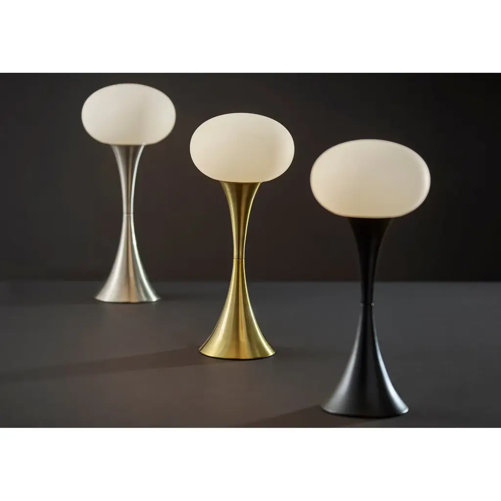 Introducing the 2603-01 Otis Table Lamp, a striking addition to any modern space. With its sleek black finish and minimalist design, this lamp brings contemporary elegance to your home or office. The frosted acrylic globe-shaped shade casts a soft and inviting glow, creating a warm ambiance in any room. Standing at 19 inches tall, it's the perfect height for bedside tables, desks, or accent tables. The tapered hourglass-shaped base adds a touch of sophistication, while the convenient On/Off touch switch allows for easy operation. Illuminate your space with style and functionality with the Otis Table Lamp. -Modern design: Sleek black finish and minimalist style add a contemporary touch to any space. -Soft illumination: Frosted acrylic globe-shaped shade diffuses light for a warm and inviting ambiance. -Versatile height: Stands at 19 inches tall, ideal for bedside tables, desks, or accent tables. -Elegant base: Tapered hourglass-shaped base adds sophistication and visual interest. -Convenient operation: Features an On/Off touch switch for easy and intuitive control.