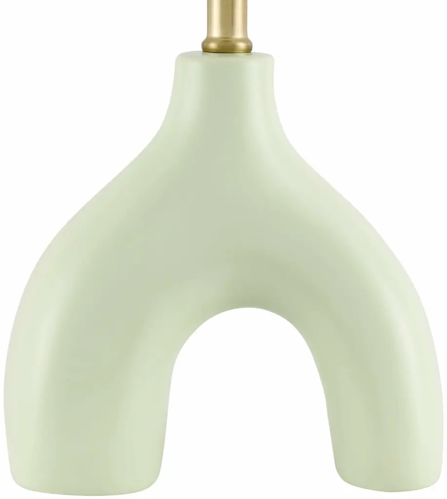 Collection: Ottenhofen Colors: Green, White, Translucent Material: Body: Ceramic / Shade (Outside): Linen, Linen / Shade (Inside): Linen, Plastic Styles: Contemporary Made In: China Lighting Type: Accent Table Lighting Shade Material: Linen, Plastic Shade Color: White Cord Length: 6' Switch Type: 3-Way Number of Bulbs: 1 Socket Type: E-26 Bulb Wattage: 100W