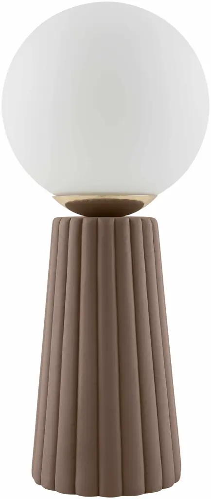 Collection: Otterwisch Colors: Dark Red, White, Translucent Material: Body: Ceramic / Shade (Outside): Glass / Shade (Inside): Glass Styles: Traditional Made In: China Lighting Type: Accent Table Lighting Shade Material: Glass, Glass Shade Color: White, White Cord Length: 6' Switch Type: On/Off Number of Bulbs: 1 Socket Type: E-26 Bulb Wattage: 40W