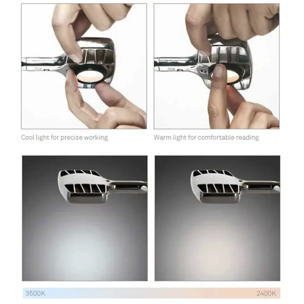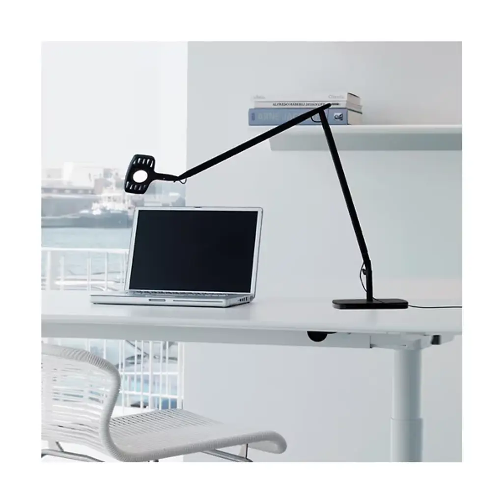The perfect desk companion for relaxation or precision work. A dimmable LED source, the Luceplan Otto Watt LED Table Lamp enables the user to adjust the color temperature from warm to cool white light by turning the LED lens. The head swivels 360 degrees and the reflector is equipped with a glare-free filter.