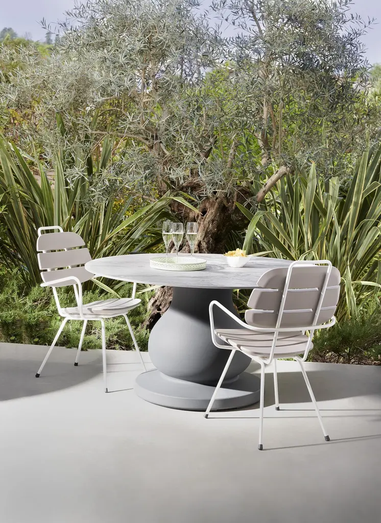 Ottocento M Table by Paola Navone OTTO StudioDimensions: Ø 80 x H 72 cm.Materials: Polyethylene and HPL.Weight: 18 kg.Finish: Granito polyethylene base and Calacatta HPL tabletop.Available in different color options. Prices may vary. This product is suitable for indoor and outdoor use. Please contact us.Our stories happen in places precious to us. SLIDE was born from the desire to produce furniture and light to create the perfect atmosphere that highlights emotions.Design is inspiration, surprise, joy. It's the amazement of seeing something unique for the first time. It's creating spaces to feel good and live surrounded by beauty. It means giving a personal imprint to indoor and outdoor spaces. It means choosing your ideal element that is the perfect setting for emotions and experiences, which become indelible memories. The founder Giò Colonna Romano knows this well, combining his fervent imagination with thirty years of know-how in the processing of plastic resins, giving birth to SLIDE in 2002. The first note of amazement is the luminous furniture, which immediately became a must have in the world of events. Since 2015, his son Marco Colonna Romano has taken over the reins of the company, with the same desire to grow and innovate as his father. Thanks to a new panache and the team of young people it surrounds itself with, SLIDE becomes a beloved company for outdoor furniture: new shapes, materials and tactile textures have won the hearts and ideas of architects and interior designers around the world. SLIDE has thus created complete collections and furnishings, with new shapes, whose lines arise from collaboration with internationally renowned designers of the caliber of Alessandro Mendini, Paola Navone, Stefano Giovannoni, Fabio Novembre, Marcel Wanders, Karim Rashid, Marc Sadler, Francesco Favaretto and Marcantonio.New materials were chosen and inserted, initially soft and rigid polyurethane, and then comfortable cushions, waterproof fabrics, tactile textures ideal for completing the polyethylene furnishings with taste and class. But SLIDE does not forget its first essence, lighting: in recent years it has developed a line of much more technical lamps for large areas, essential in shape but with great visual impact. For the first time, Slide has managed to give an artisanal twist to an industrial process: to meet the increasingly high demands of living, the production creates non-replicable shades, in which every small imperfection enhances the industrial process and makes each piece unique . Because Slide's strength has always been the careful reading of the market, the creation of something that didn't exist and which then became necessary: here Slide continues its production in Buccinasco, on the outskirts of Milan, but its name and its products reach more than 130 countries around the world.
