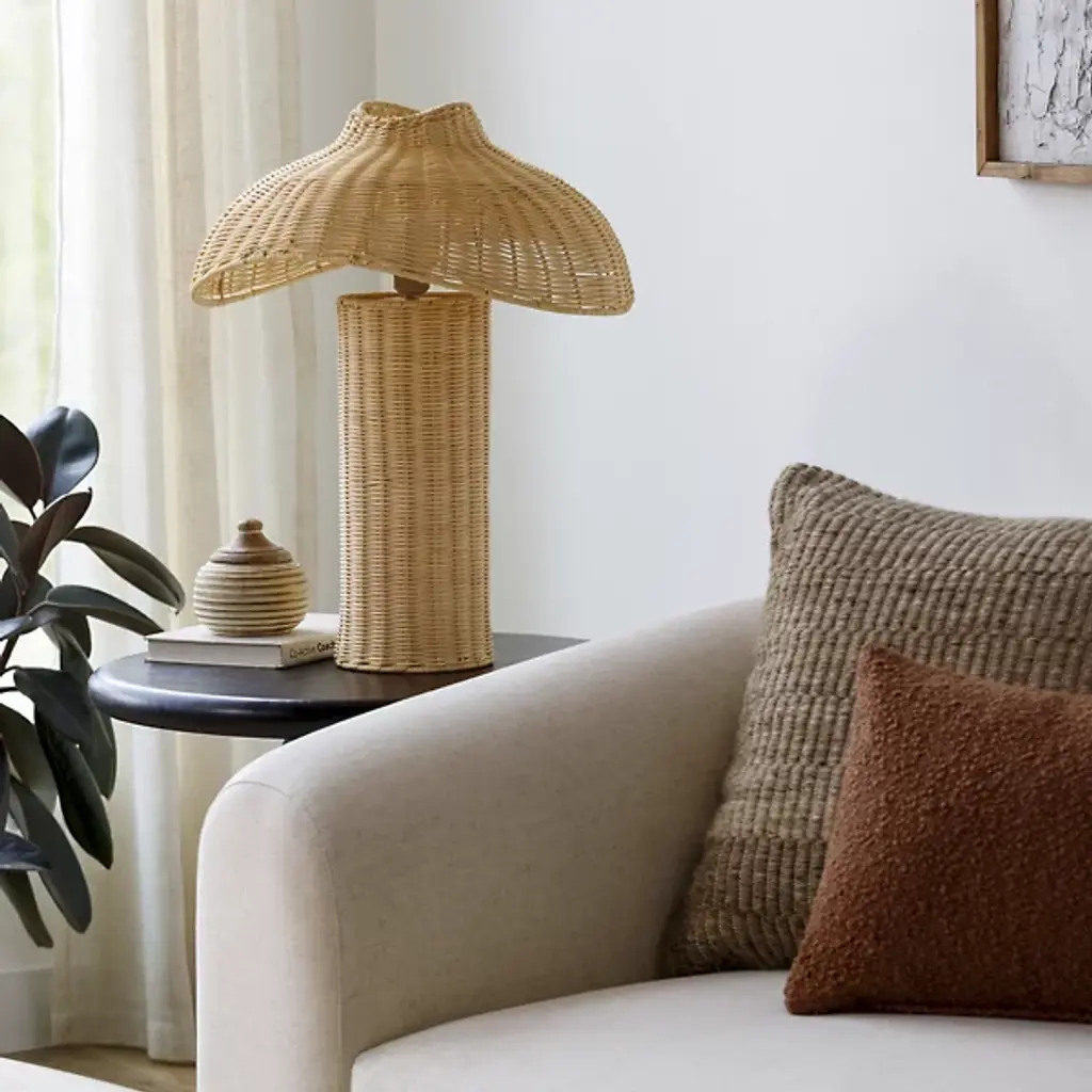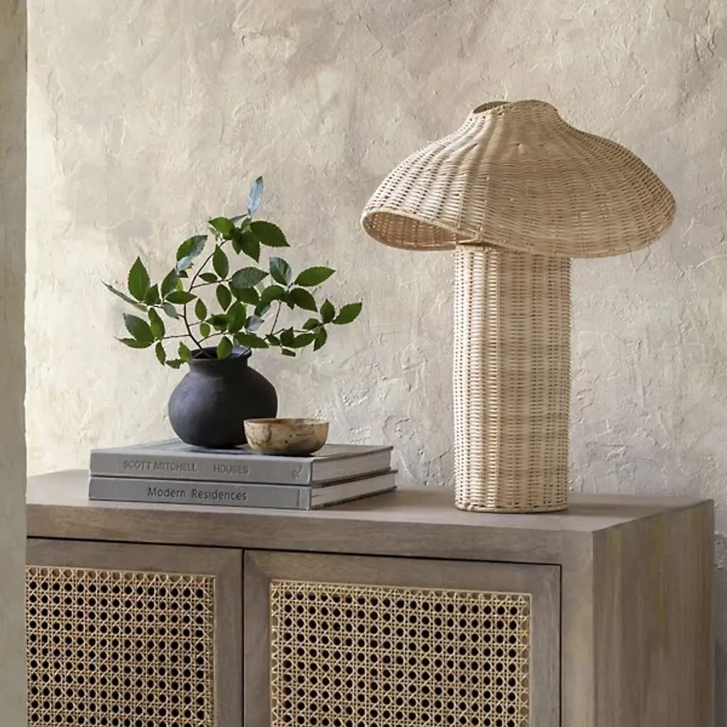 The Ouen Table Lamp from Surya brings natural texture into your home through its handwoven rattan construction. The rattan extends from base to shade, creating a unified design that filters light through its intricate weave pattern. Light peeks through the open spaces between the woven strands, casting gentle patterns that elevate your space after dark. The lamp's socket-mounted switch puts control right where you need it without disrupting the clean profile. It fits perfectly in reading nooks, entryway tables, or bedside spaces where a touch of natural material makes all the difference.