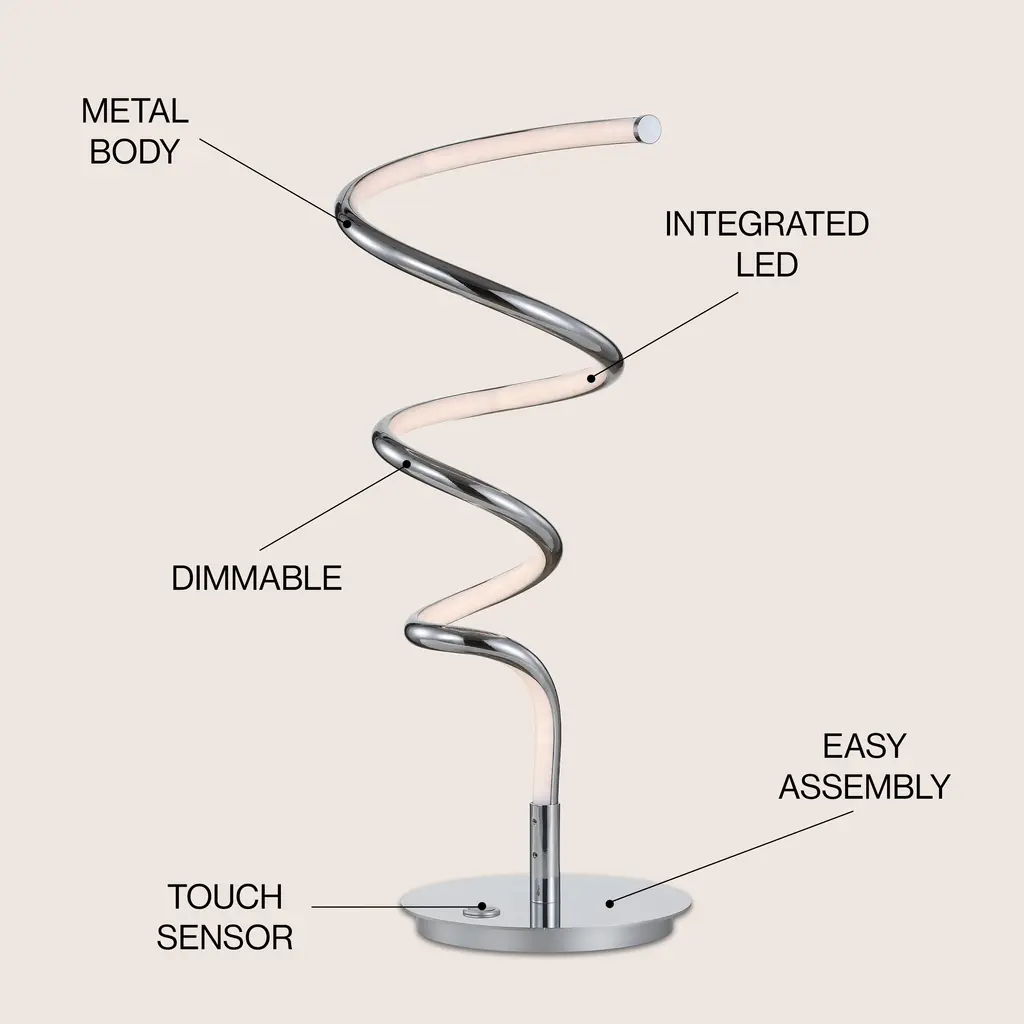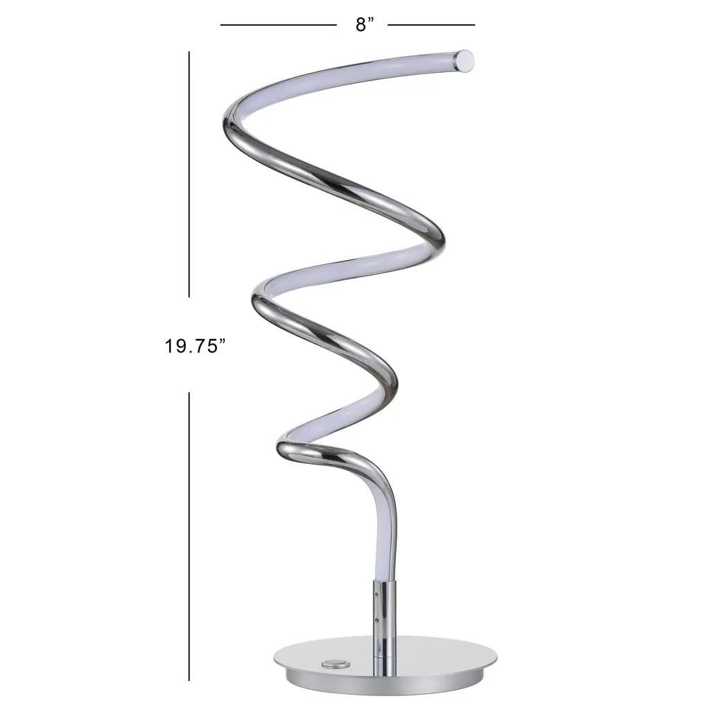 Our scribble-inspired, modern table lamp features energy-saving, integrated LEDs that last 15 years or more. This slim, 19.5" tall lamp provides bright, clear light; you set the mood with 3-way touch controls. Contemporary style for a living room, dining room, entry, or office.Features:Dimensions:About us:You see a lamp.We see a decorative work of art.A perfectly curved shade casts a dramatic shadow on a floor. A silk cord you never want to hide. Compatible with LED lightbulbs: as easy on the environment as they are on the eyes. The JONATHAN Y Lighting collection considers every detail from impeccably sourced materials to designer styling. And our prices are so attractive, we've transformed a functional necessity into a fashion accessory.JONATHAN Y Lighting - a fashion revolution in home decor.