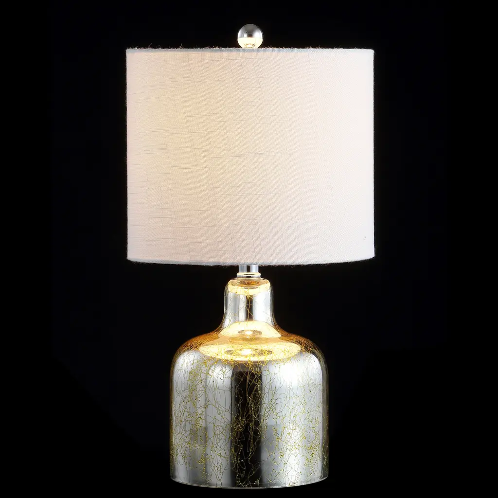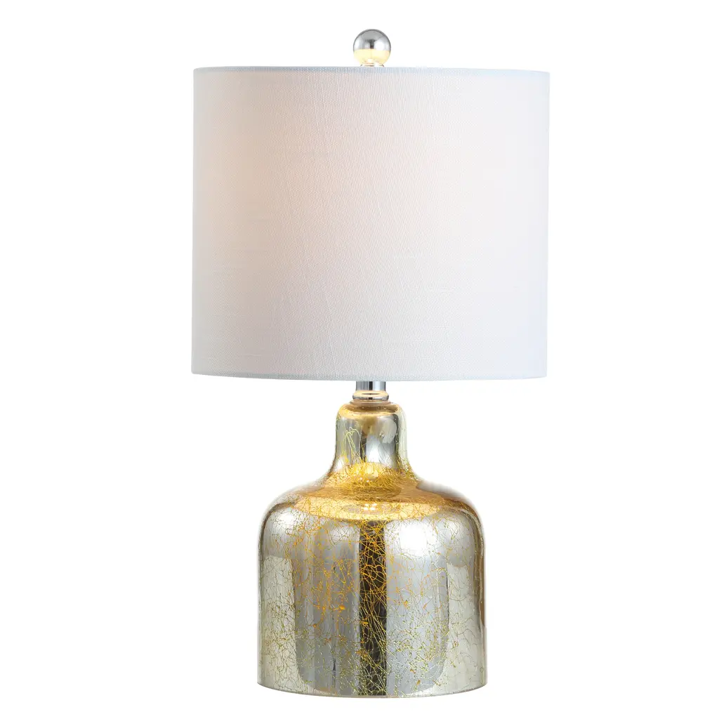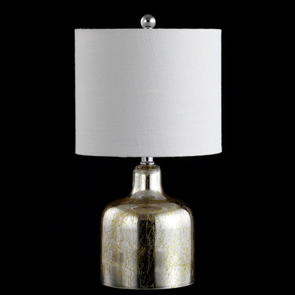 The bottomless bell jar shape of this small-scale table lamp, combined with a classic linen drum shade, create a compelling blend of traditional and contemporary design that is well suited to a variety of design styles. The clean lines of this light fixture will add a fashionable and functional touch to any home. In addition to enhancing your space with its chic design, you can rely on this lamp to last -- it's chrome hardware and UL-rated electrical components make it built to illuminate memories for years to come. Features:Dimensions:About us:You see a lamp.We see a decorative work of art.A perfectly curved shade casts a dramatic shadow on a floor. Compatible with LED lightbulbs: as easy on the environment as they are on the eyes. The JONATHAN Y Lighting collection considers every detail from impeccably sourced materials to designer styling. And our prices are so attractive, we've transformed a functional necessity into a fashion accessory.JONATHAN Y Lighting - a fashion revolution in home decor.
