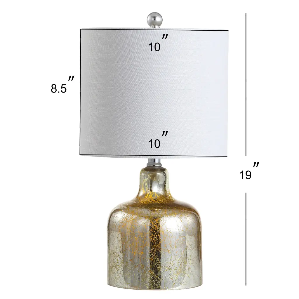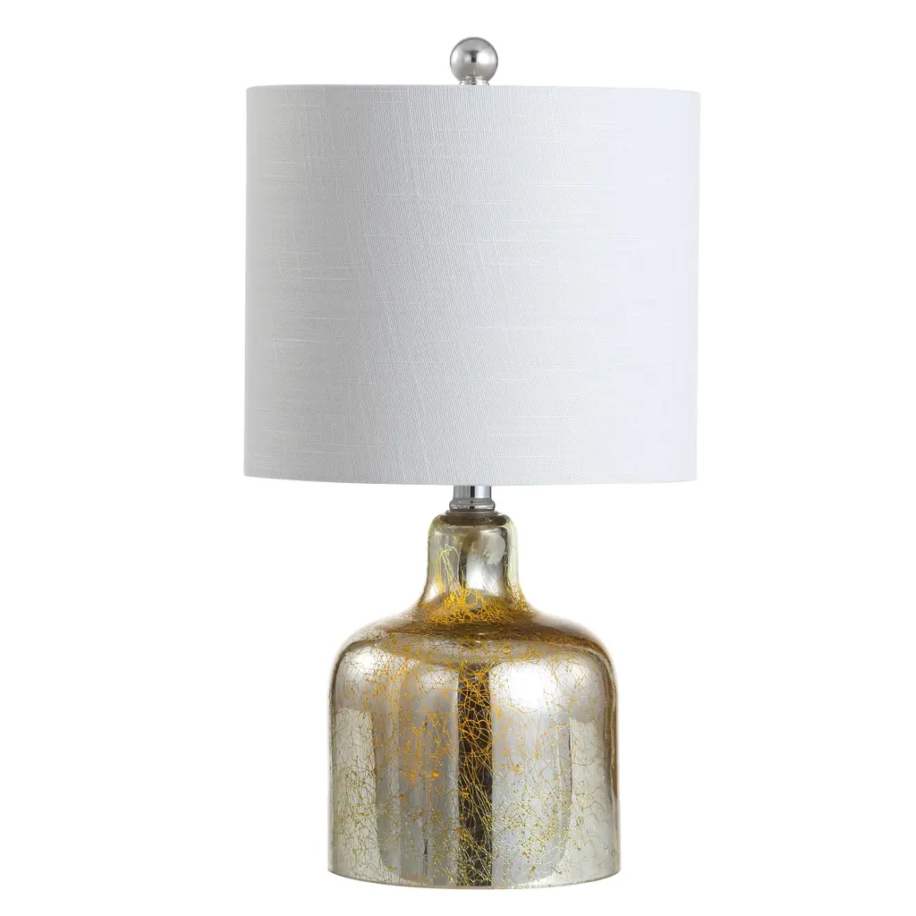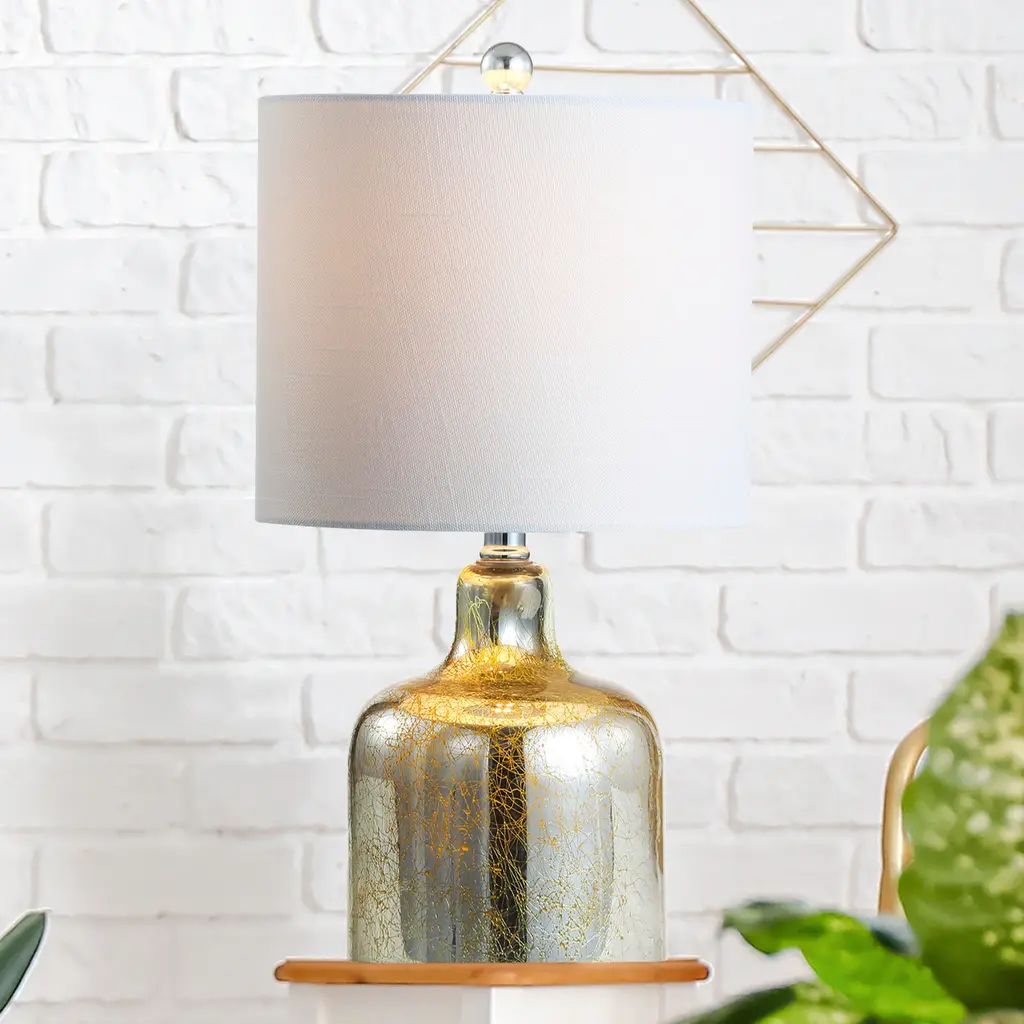 The bottomless bell jar shape of this small-scale table lamp, combined with a classic linen drum shade, create a compelling blend of traditional and contemporary design that is well suited to a variety of design styles. The clean lines of this light fixture will add a fashionable and functional touch to any home. In addition to enhancing your space with its chic design, you can rely on this lamp to last -- it's chrome hardware and UL-rated electrical components make it built to illuminate memories for years to come. Features:Dimensions:About us:You see a lamp.We see a decorative work of art.A perfectly curved shade casts a dramatic shadow on a floor. Compatible with LED lightbulbs: as easy on the environment as they are on the eyes. The JONATHAN Y Lighting collection considers every detail from impeccably sourced materials to designer styling. And our prices are so attractive, we've transformed a functional necessity into a fashion accessory.JONATHAN Y Lighting - a fashion revolution in home decor.