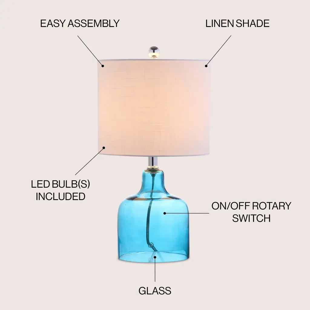 The bottomless bell jar shape of this small-scale table lamp, combined with a classic linen drum shade, create a compelling blend of traditional and contemporary design that is well suited to a variety of design styles. The clean lines of this light fixture will add a fashionable and functional touch to any home. In addition to enhancing your space with its chic design, you can rely on this lamp to last -- it's chrome hardware and UL-rated electrical components make it built to illuminate memories for years to come. Features:Dimensions:About us:You see a lamp.We see a decorative work of art.A perfectly curved shade casts a dramatic shadow on a floor. Compatible with LED lightbulbs: as easy on the environment as they are on the eyes. The JONATHAN Y Lighting collection considers every detail from impeccably sourced materials to designer styling. And our prices are so attractive, we've transformed a functional necessity into a fashion accessory.JONATHAN Y Lighting - a fashion revolution in home decor.
