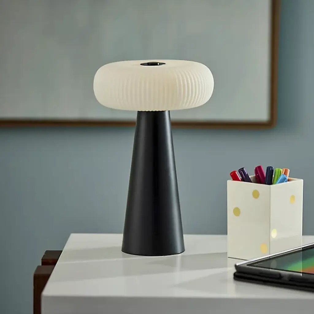 The Ozzie LED Table Lamp from Adesso is a portable lighting solution optimized for both indoor and outdoor use. Its conical shape and rounded white plastic shade create a warm, inviting glow, while the 3-level touch dimmer allows for adjustable brightness. Energy-efficient and long-lasting, this compact lamp is perfect for patios, outdoor dining, or cozy backyard gatherings. With an IPX4 rating for water resistance, it stands up to splashes, making it a reliable choice for versatile, everyday lighting.