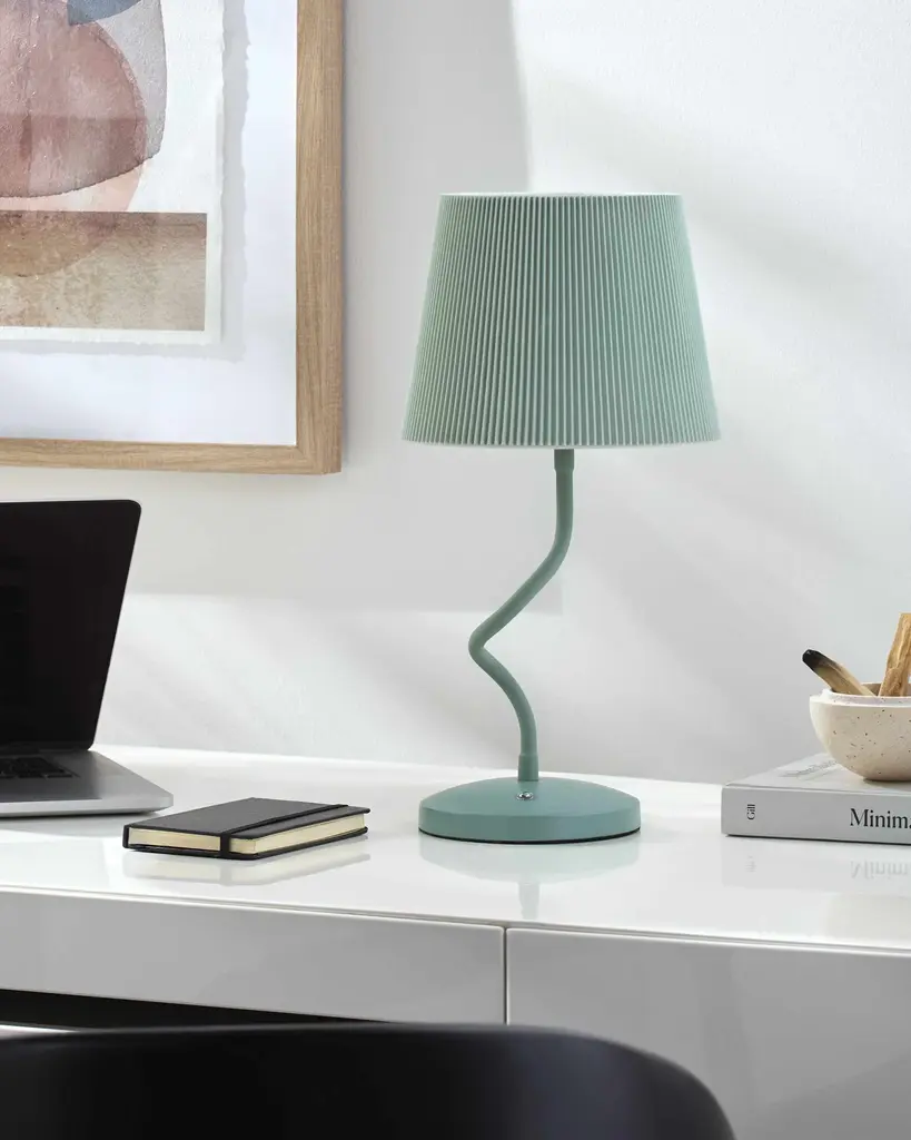 Collection: Pachiquita Colors: Sage, Green, Lime Green, White Material: Body: Iron, Plastic / Base: Iron / Shade (Outside): Polyester Styles: Contemporary Made In: China Lighting Type: Accent Table Lighting Base: Iron Base Color: Green Shade Material: Polyester Shade Color: White, Grass Green Cord Length: 0' Switch Type: Dimmer Number of Bulbs: 1 Socket Type: E-12 Bulb Wattage: 7W