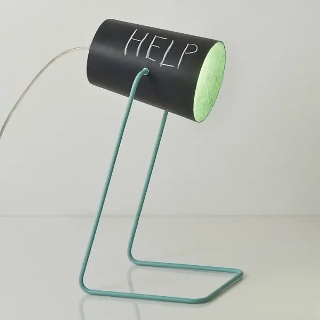 The In-Es Art Design Paint Lavagna Table Lamp makes light your canvas with a blackboard shade you can write on. The shade is made from designer Ocilunam’s special blend of resin and fiberglass (Nebulite®) but is painted with a blackboard effect so that you can write on the outside with chalk. The fixture is a handy little spot light with an adjustable shade on the metal base, but is also an interactive design that you can personalize with your own messages.