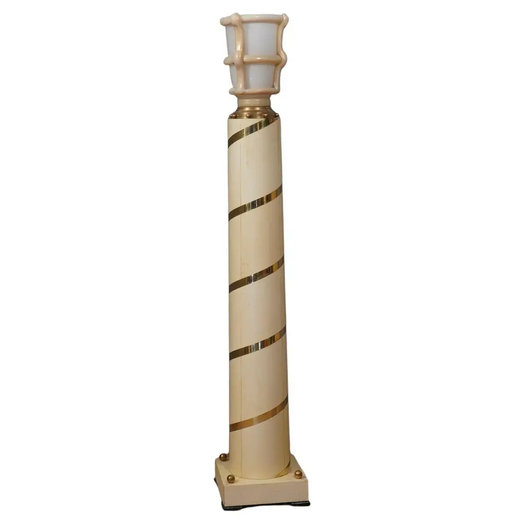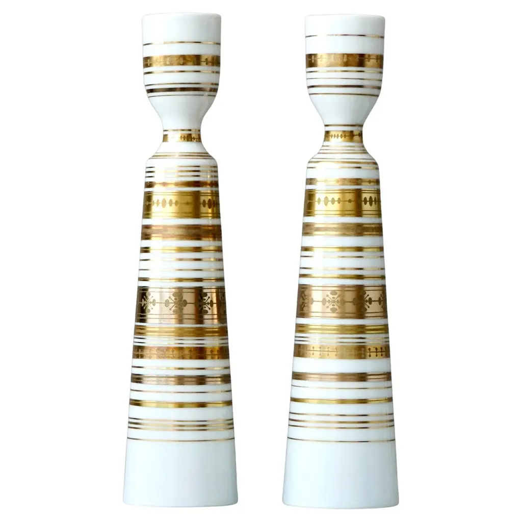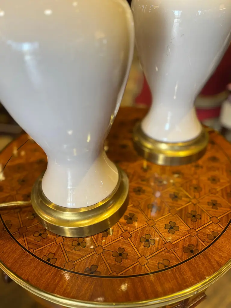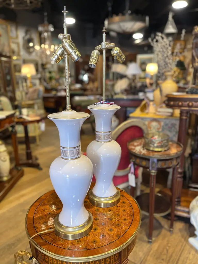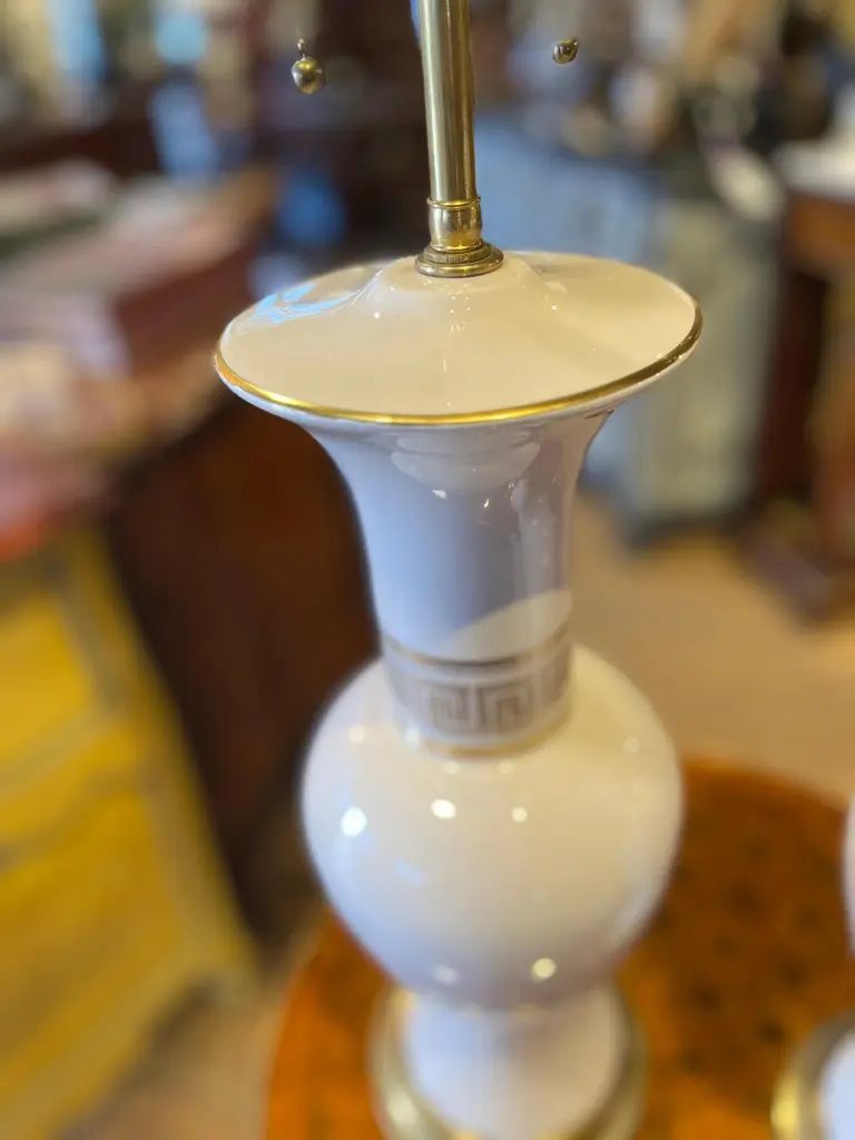 Pair Midcentury Porcelain Lamps With Greek Key Detail