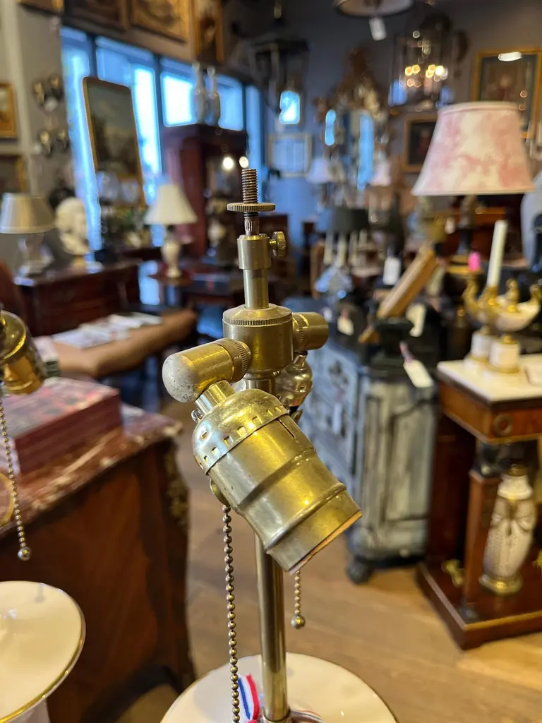 Pair Midcentury Porcelain Lamps with Greek Key Detail. 20th Century Lamps purchased in France. Very handsome set. Shades not included. tested and working. In great condition...See detailed photos.