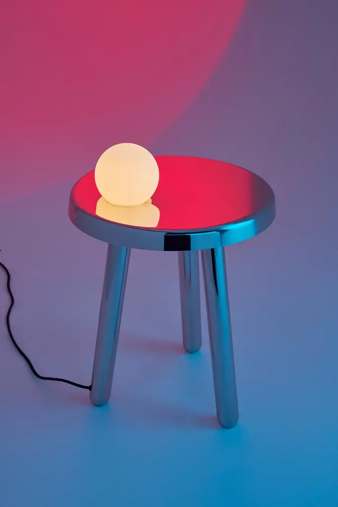 Alby small table with lamp by Mason Editions.Design: Matteo Fiorini.Dimensions: Ø.40 x 50 cm.Materials: Blown glass, metal.Finishings: Light grey, petrol green, black or polished white nickelLight source: G9 LED bulbsVoltage: 110-120 v 220 -240 v.Like a photon in constant motion, bending space as it goes, the luminous source seems to have sufficient weight to distort the top on which it rests.The concept is inspired by Albert Einstein’s Theory of Relativity and his space-time studies.The curved shape of the top, a surprising yet subtle touch, confers a discreet personality to an object characterized by simple, clean-cut shapes and an interesting textural note.All our lamps can be wired according to each country.Mason Editions is an Italian company specialized in the production of design furniture, lighting solutions, and accent pieces. Born from the lifelong passion for lighting and entrepreneurial spirit of Fabio and his partner Silvia, Mason Editions places itself halfway between fine art and exquisite craftsmanship. A collection of lighting, design objects, and furnishing accessories, signed by artists Serena Confalonieri, Martina Bartoli, and Matteo Fiorini, head of the creative direction.Mason Editions comes from the experience of an Italian lighting company placed in the Veneto region.This new brand of furniture elements was born from the meeting between the entrepreneur Fabio Mason and three international designers who designed the first collection for a sophisticated public. Therefore the collection wants to be eclectic and timeless.The Material contrast and fresh design, with essential shapes mark the mason editions collection.In conclusion, the elegant Italian sign highlights proposals suitable for all environments.Mason editions is a set of experiences, artisans and productive know-how that creates a capable system..