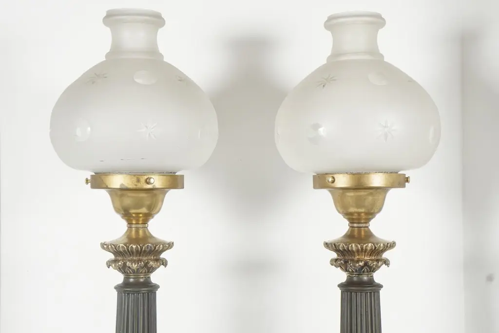 Pair Of Cast Brass & Tole Neoclassical Sinumbra Style Lamps