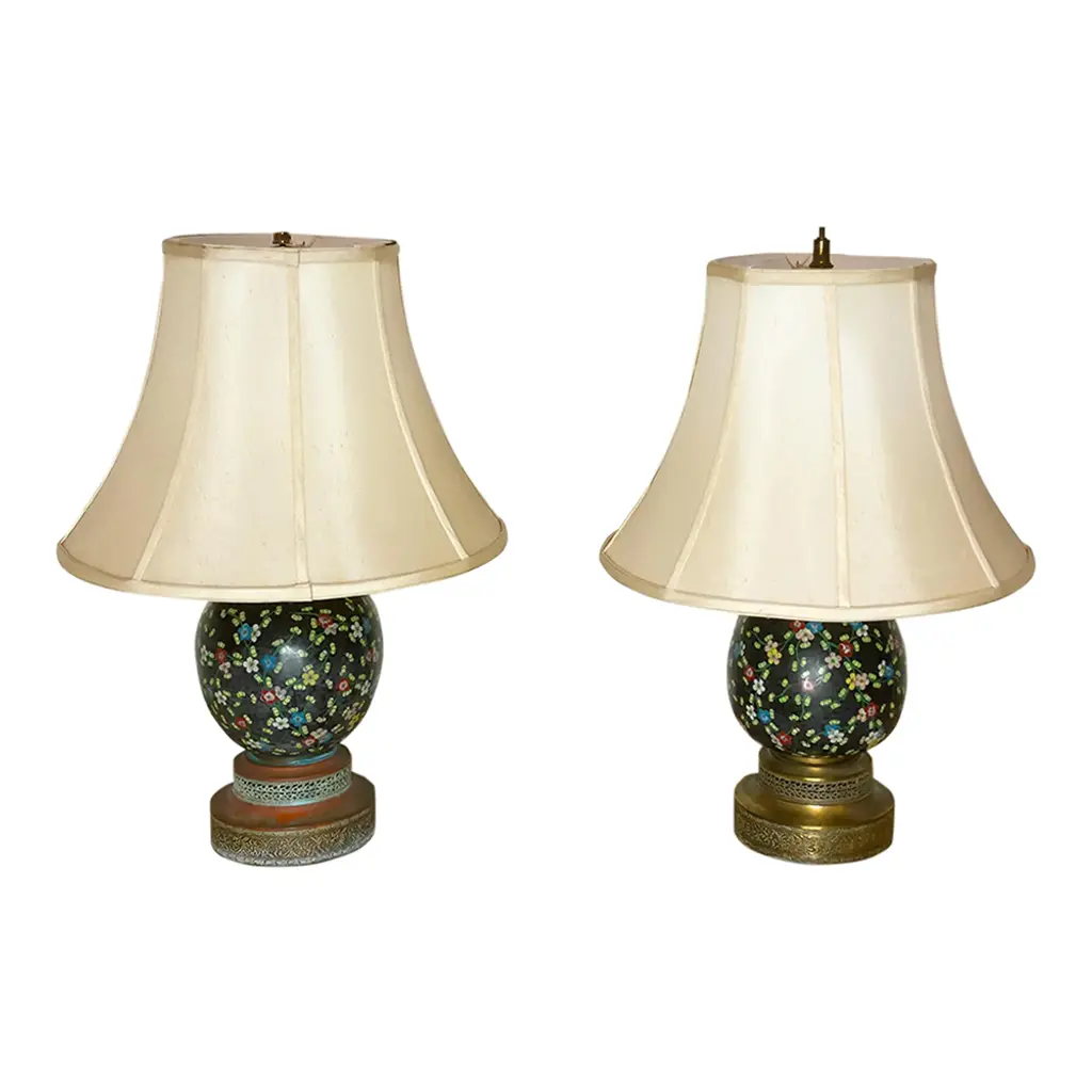 This exquisite pair of table lamps showcases the artistry and intricate beauty of Chinese cloisonné. Crafted from enameled metal, these lamps, likely dating back to the late 19th or early 20th century, feature a captivating floral design that adds a touch of Eastern elegance to any space. The lamps' bases, adorned with vibrant blossoms and delicate foliage, are a testament to the meticulous craftsmanship of cloisonn�����.(Please note: Shades are for reference only and not included.)