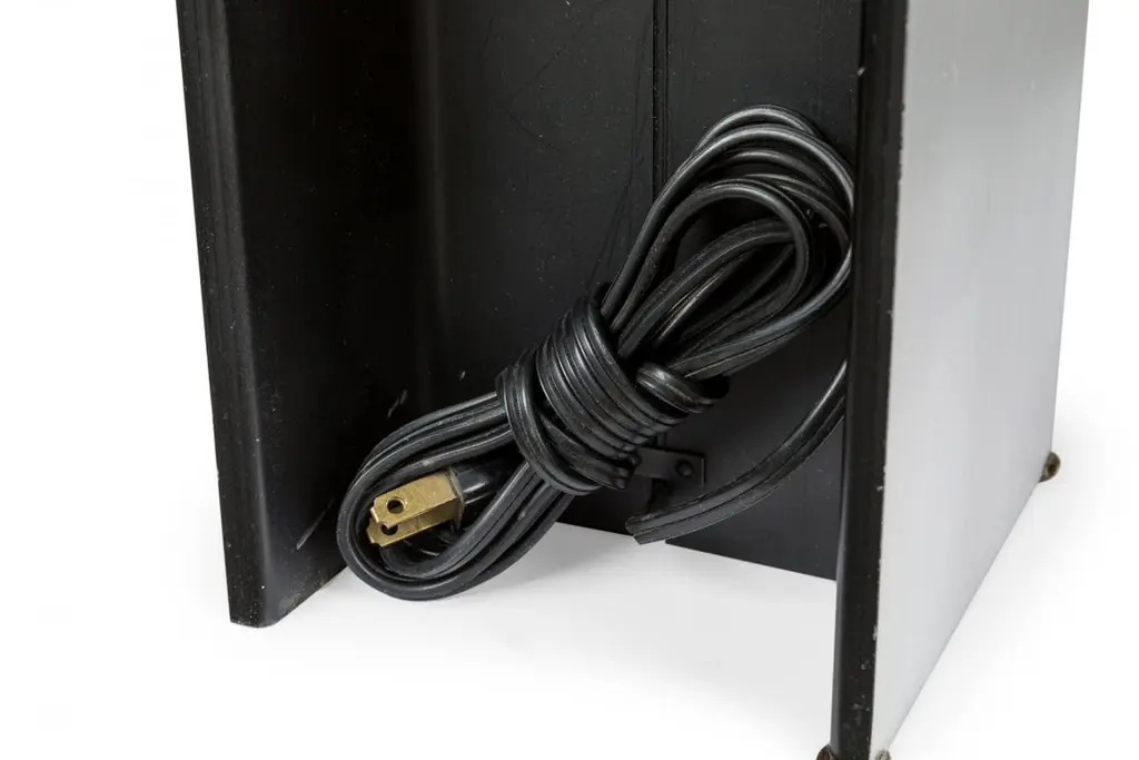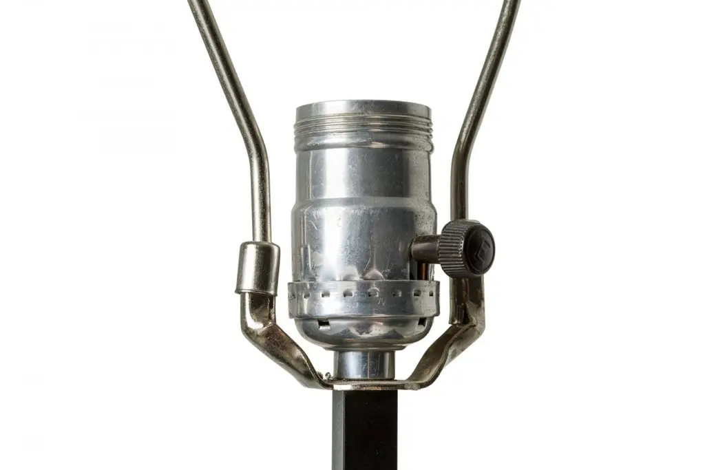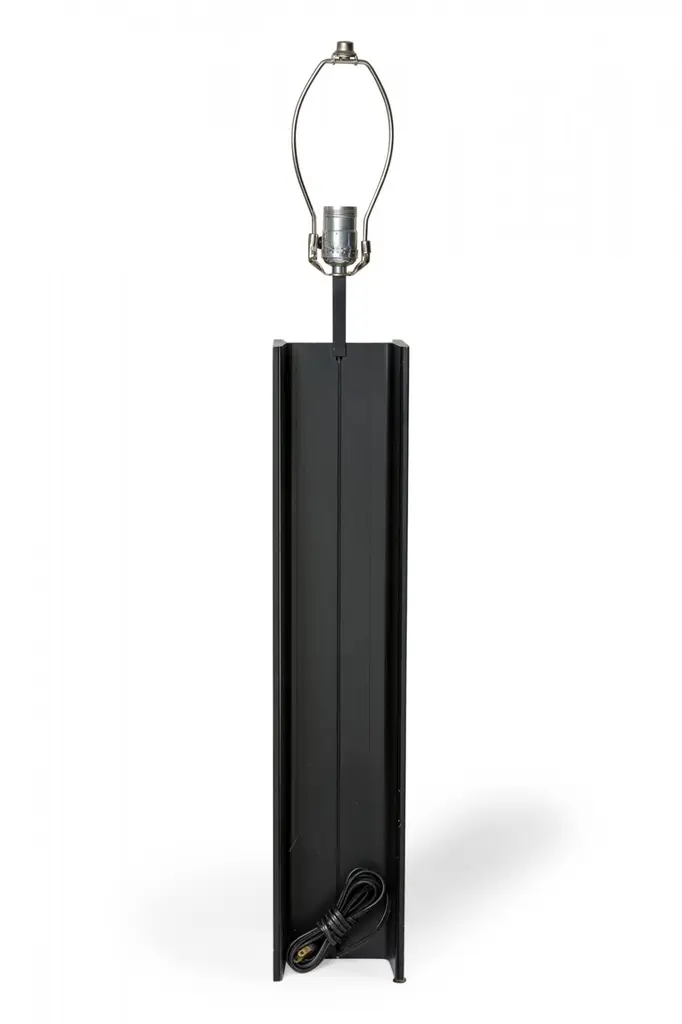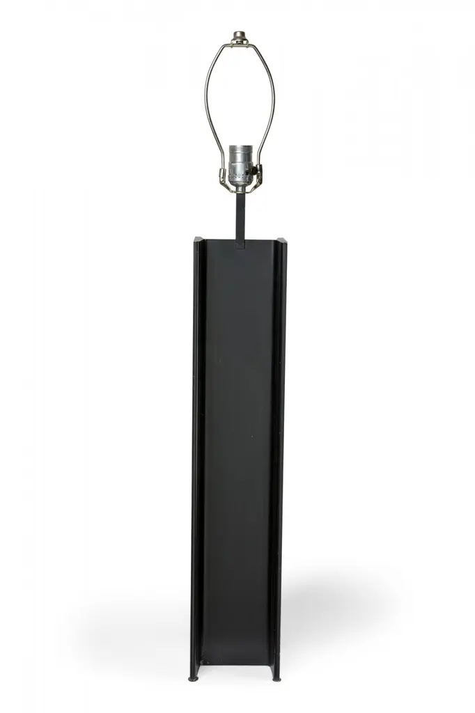 Pait of American mid-century I-beam design table lamps in satin steel and black enamel. (Laurel Lamp Co.)(Priced as Pair).