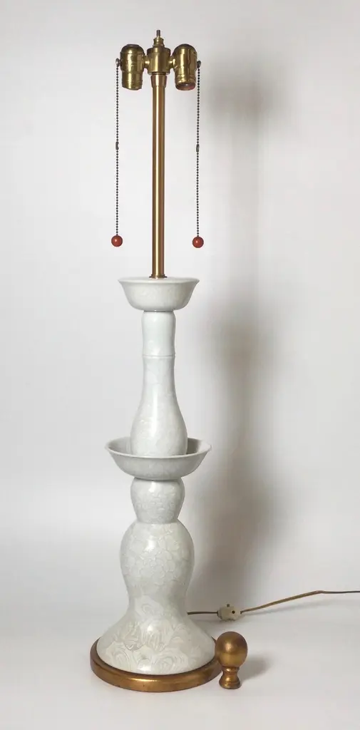 Pair Of Mid-Century Modern Tall Porcelain Lamps