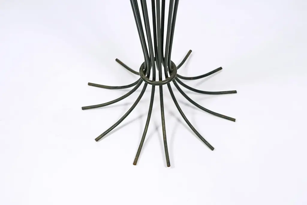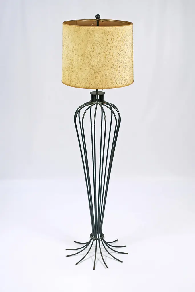 Pair of "Milles Patte" lamps designed by Jean Royère (1902-1981). Painted metal and cloth shade.Gilbert Poillerat, ed., Ferronnerie d’Aujourd’hui, Paris, 1951, pl. 20; Jean Royère, décorateur à Paris, exh. cat., Musée des Arts décoratifs, Paris, 1999, p. 163France, CIRCA 1955.