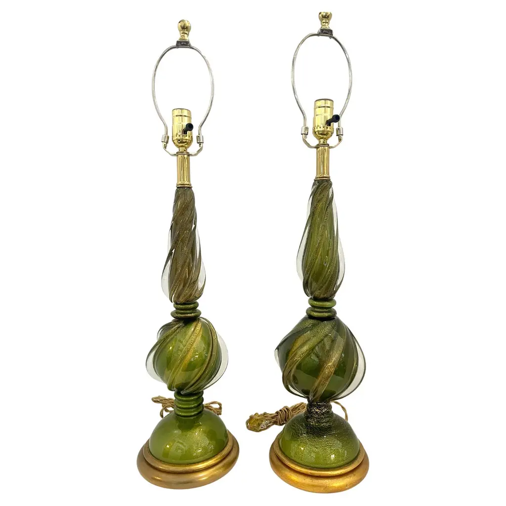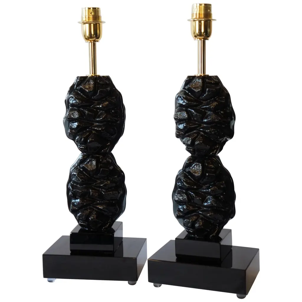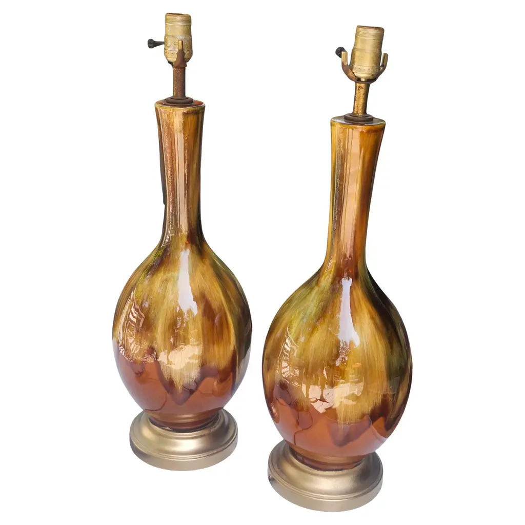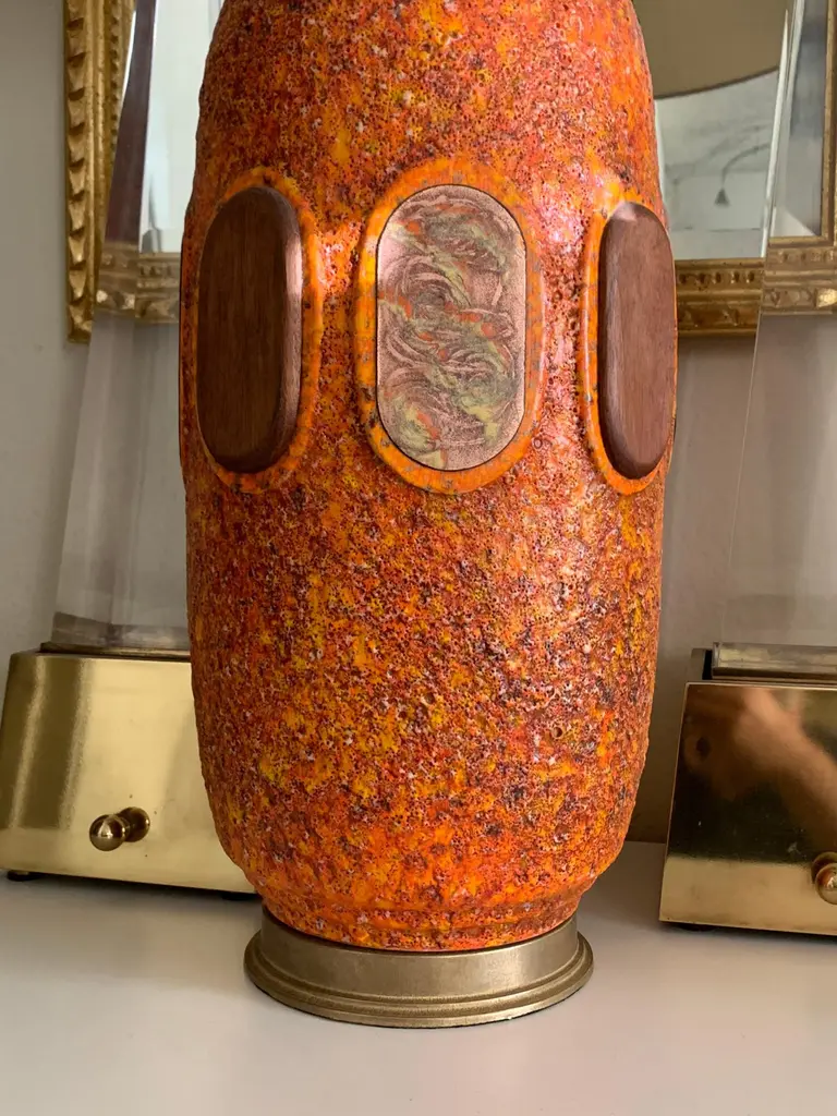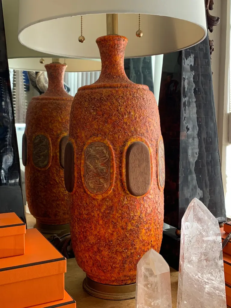 Pair Of Orange Lava Glazed Ceramic Lamps