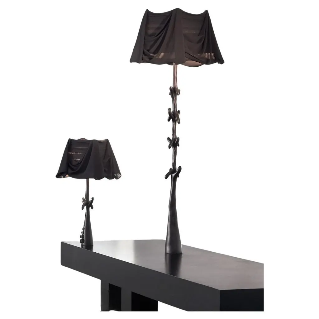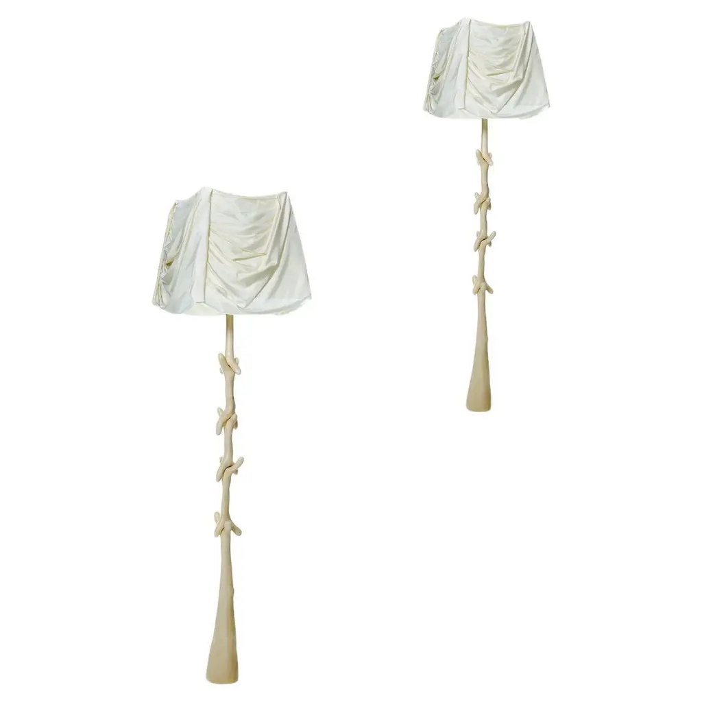 Muletas Pair of lamps designed by Salvador Dali manufactured by BD furniture in Barcelona.Limited EditionDyed Lime Wood satin in black.Lampshade in Transparent Black Chiffon.Refined materials and handcrafted manufacturing to bring up to date a furniture collection that BD has sold exclusively all over the world since the 90s, guaranteed by The Gala-Salvador Dali Foundation responsible for the painter’s rights. The black label collection came to market in a limited edition of 105 pieces (the age of Dali in 2009). Measures Each: 45 x 45 x 187 H. cmA standing lamp taken from Dalí’s designs for Jean Michel Frank. The ‘Muletas’ had its beginnings at the surreal stage and is an obsession which persists in Dalí’s works as can be seen in “El Sueño” 1937 (The Dream) and “Autorretrato blando con beicon frito” 1941 (A soft self - portrait with fried bacon), amongst others.