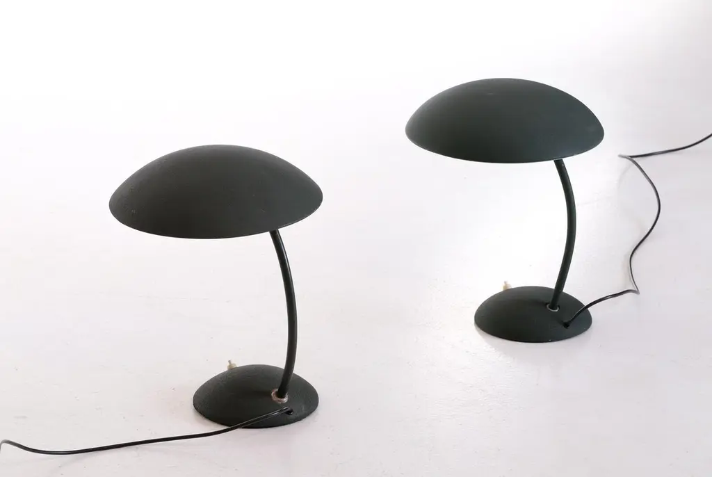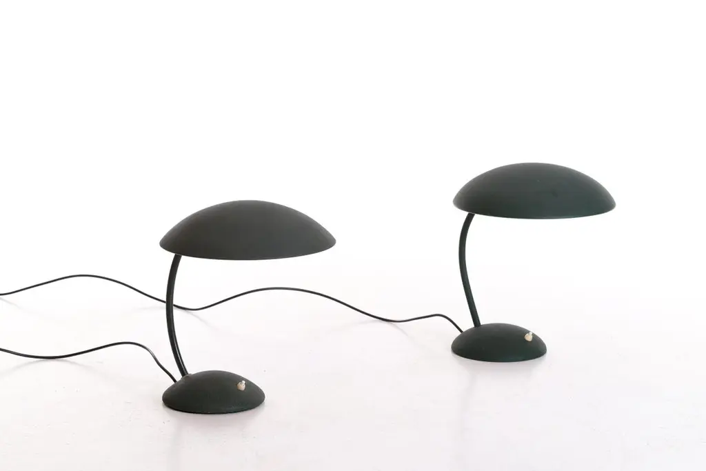 Pair of dark green Swedish table / desk lamps produced by Elektroskandia, Sweden, 1950s.¨New wiring. Slightly different in color.Sold individually or as a pair. Listed price is for one (1) lamp.