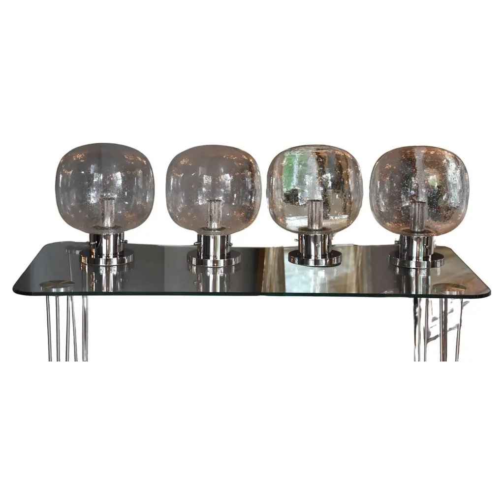 A rare pair of Holophane lamps; French; from Nice. Crafted by the renowned company BBT who specialized in urban lighting in Paris and Nice. The globes featured in Nice’s iconic “Promenade des Anglais”. They have been newly wired to US standards and we currently have three pairs available.