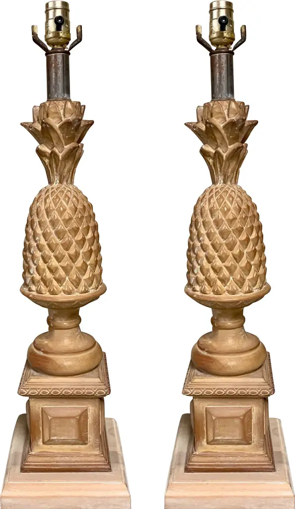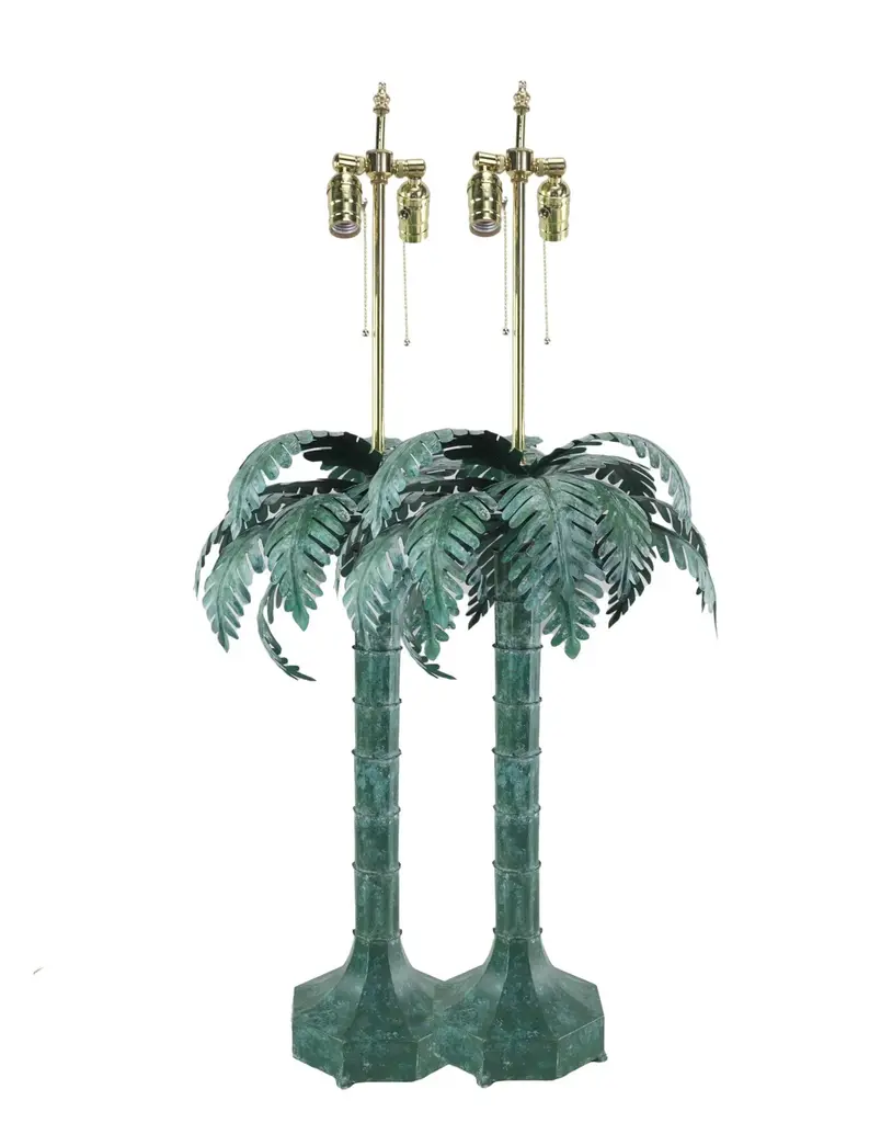 Pair Of Vintage Palm Tree Table Lamps, Metal