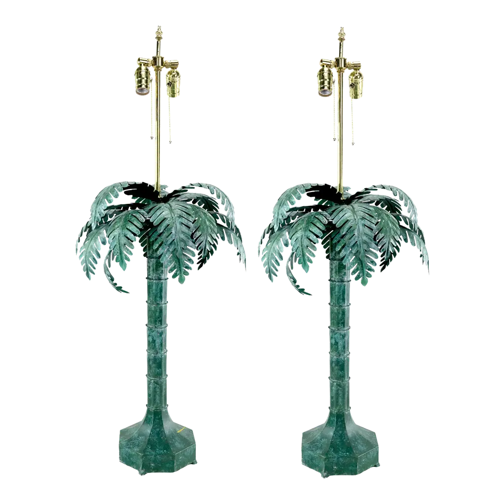 Pair of Vintage Palm Tree Table Lamps, Metal A pair of painted French palm tree table lamps circa 1980 s with original finish.