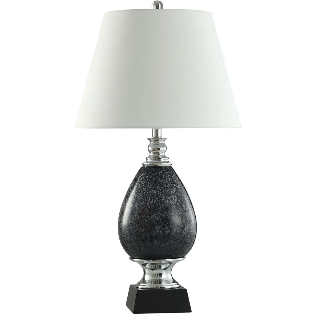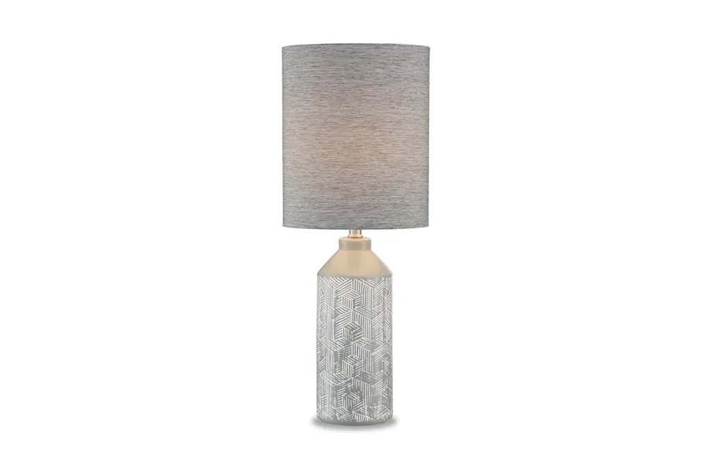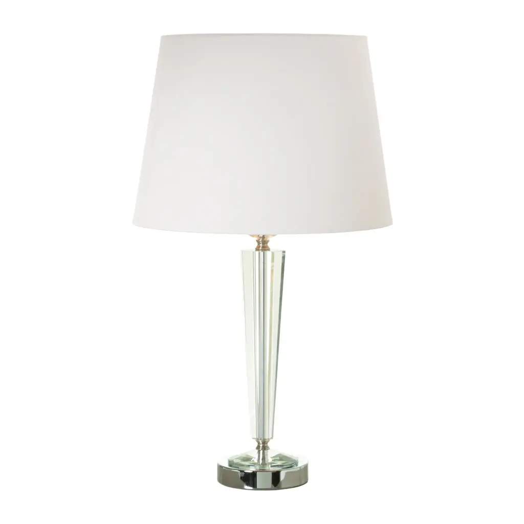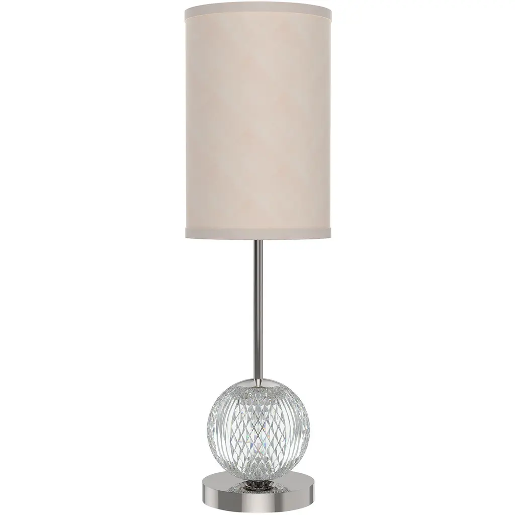 Boasting an elegant and dainty silhouette, this bedside lamp will complement both classic and modern decors. Crafted of fine porcelain enriched with metal details, the eclectic and refined base is adorned with a geometric pattern boasting brushed and polished nickel hues, and is topped with a cylindrical shade in beige fabric holding an E14 light bulb (max 60W).