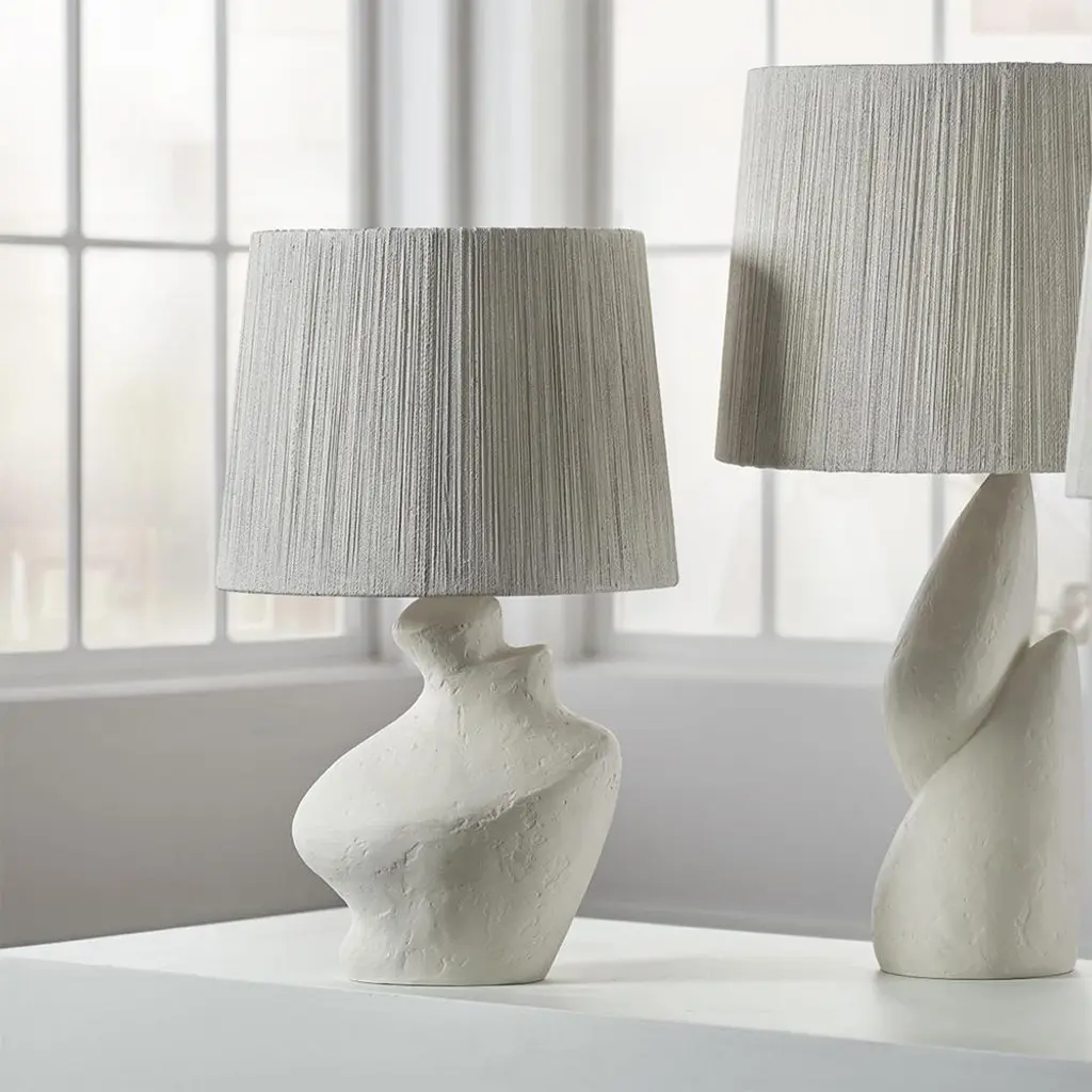 Palecek Ezra Coastal Beach White Stonecast Base Bedside Table Lamp