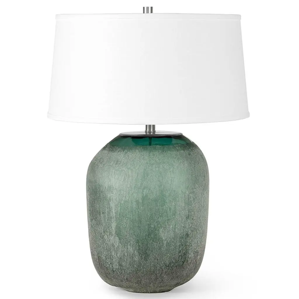 Palecek Mykonos Coastal Beach Teal Green Glass Bedside Table Lamp